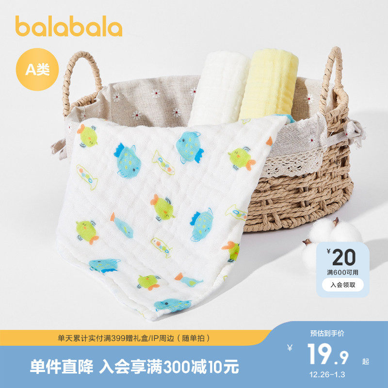 巴拉巴拉新生儿小方巾婴儿用品初生宝宝纯棉舒适简约清新三件装萌
