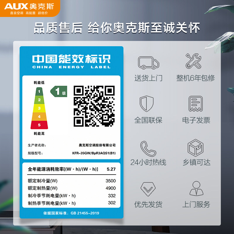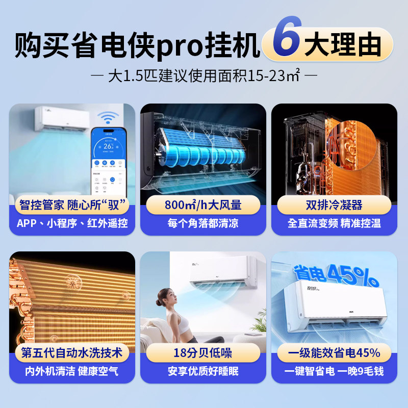 政府补贴奥克斯空调省电侠pro大1/1.5匹一级能效挂机家用节能117