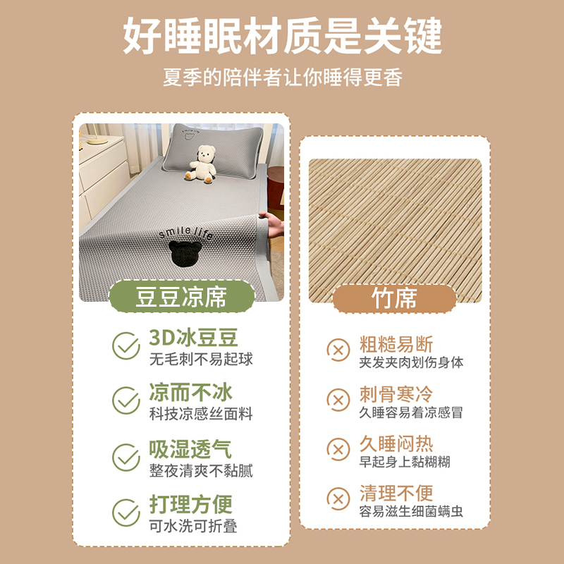 多喜爱夏季冰丝凉席冰豆豆A类母婴级床罩新款空调软席子宿舍单人