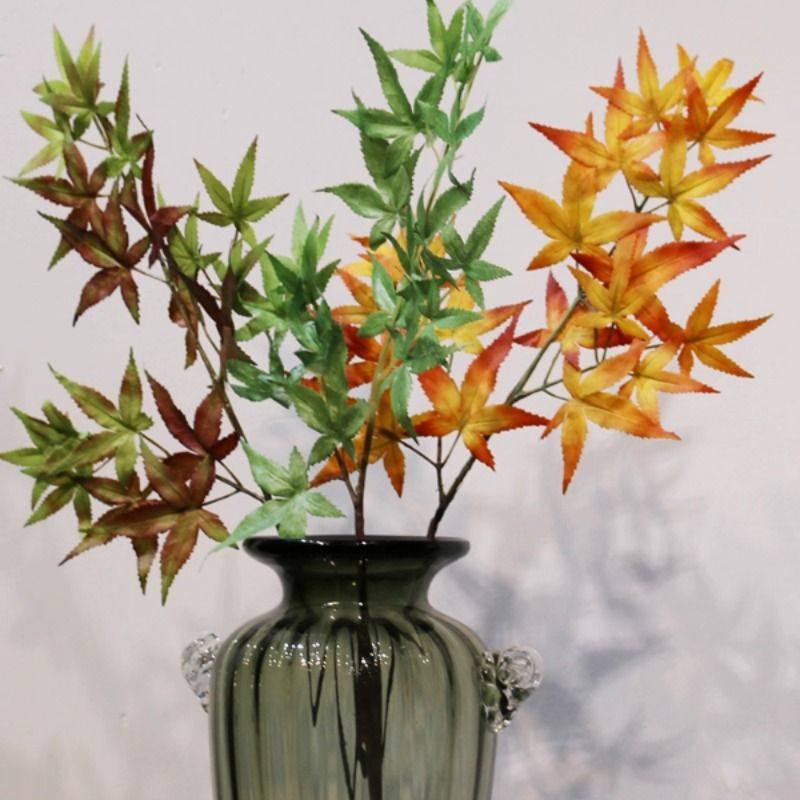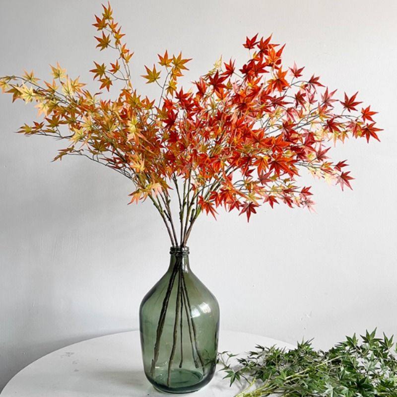 仿真假绿红色单枝鸡爪槭日本红枫叶盆景绿植物树叶景装饰花艺景观