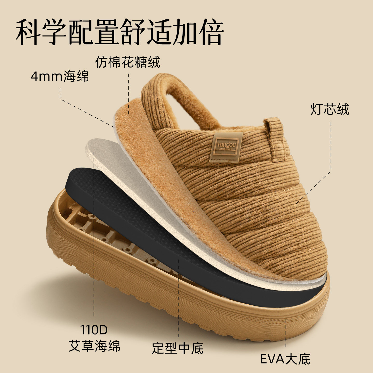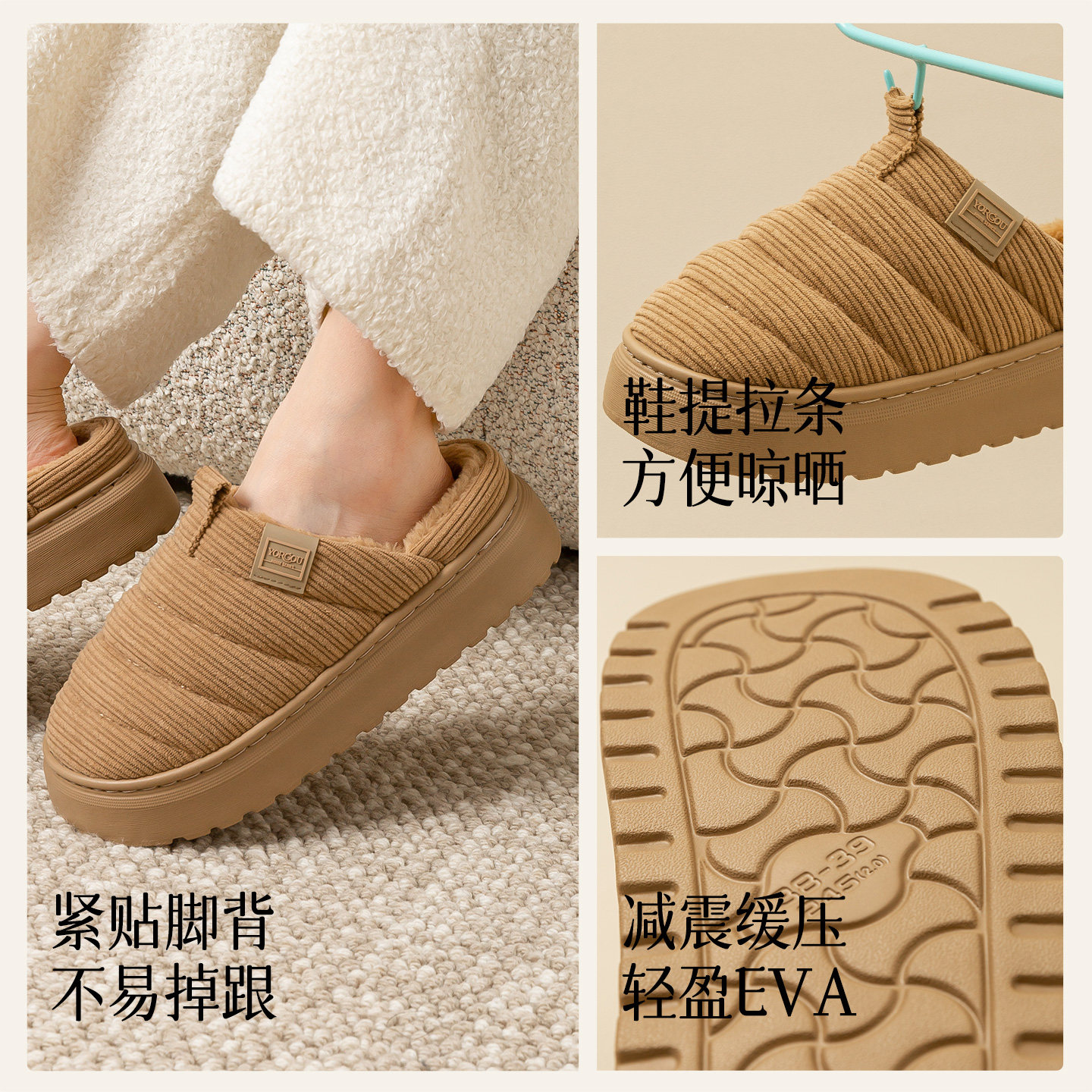 2025新款时尚灯芯绒棉拖鞋秋冬季女室内加绒保暖居家用抗菌厚底男