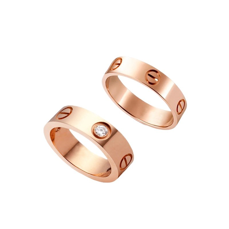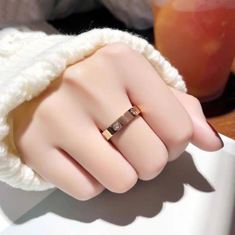 溪御钛钢钻戒指环男女 ing风潮不掉色个性素圈锆石情侣戒指