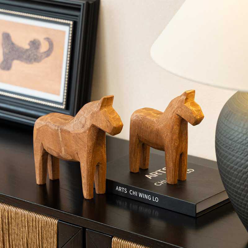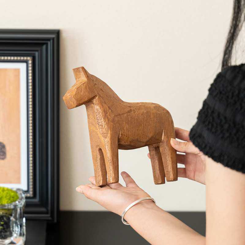 QY复古陶瓷小木马侘寂风日式手工艺品家居装饰摆件橱窗案台陈列摆