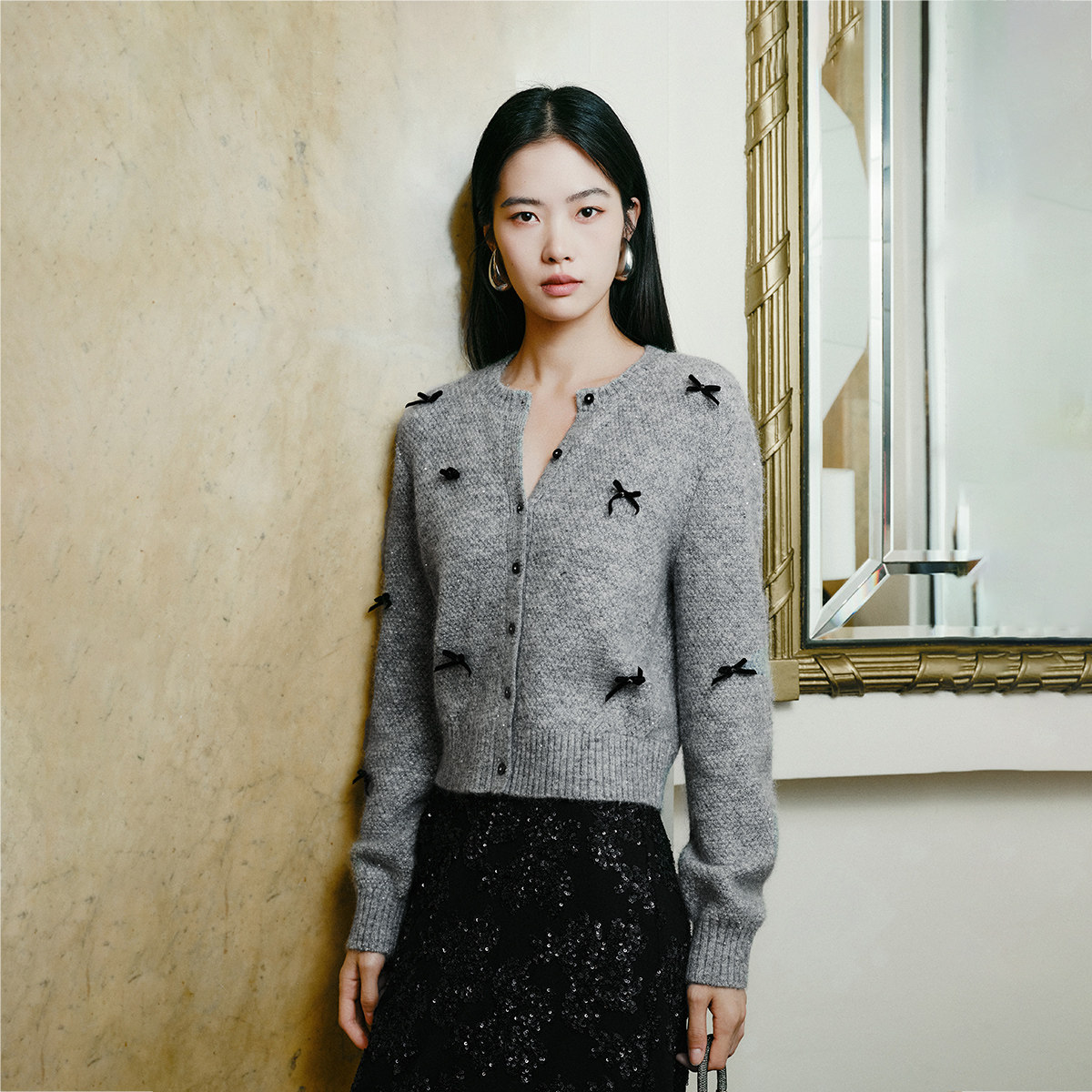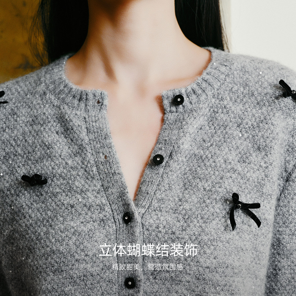 Vero Moda针织衫2026春季新款含绵羊毛马海毛蝴蝶结开衫326124042