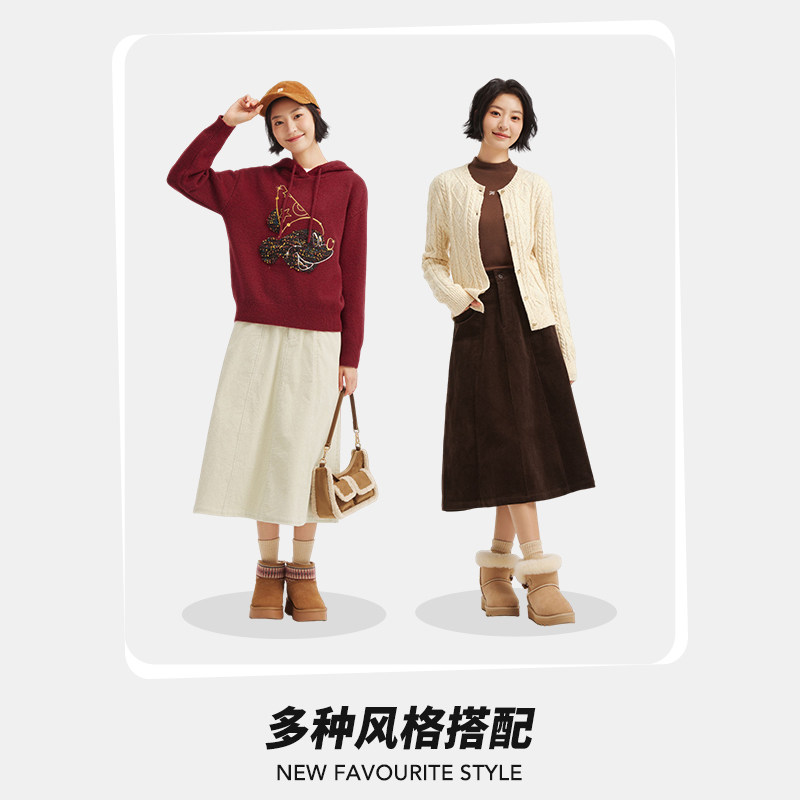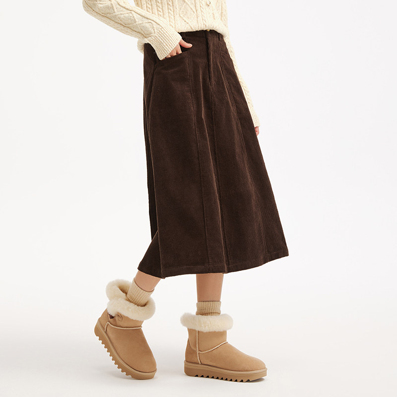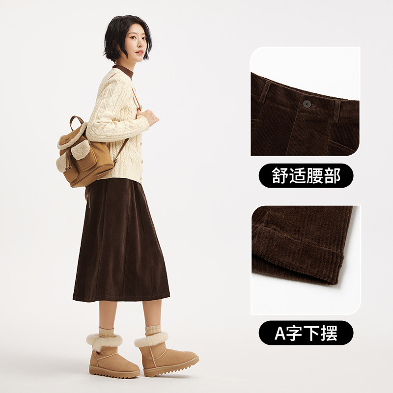 热风女士半身裙2025年冬季新款复古灯芯绒半裙松紧腰显瘦半身裙