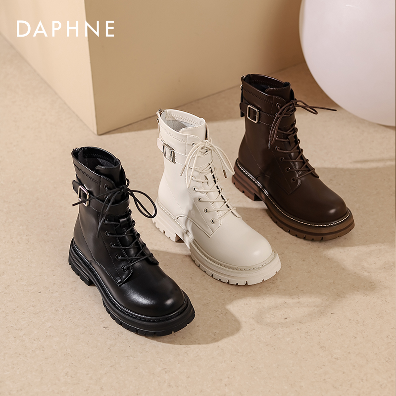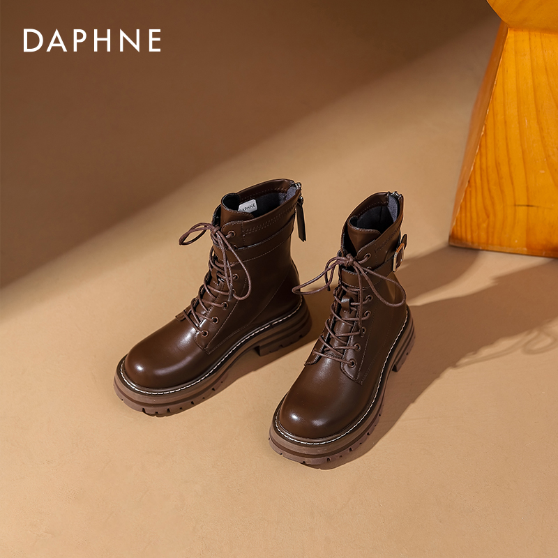 达芙妮厚底马丁靴女秋冬2025短筒瘦瘦靴子女鞋小个子棕色短靴女款