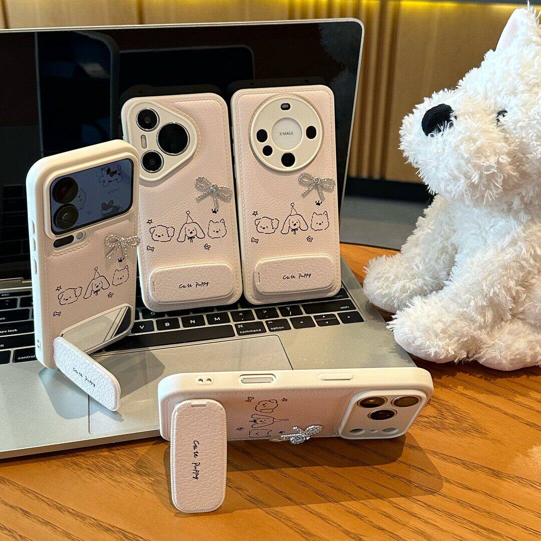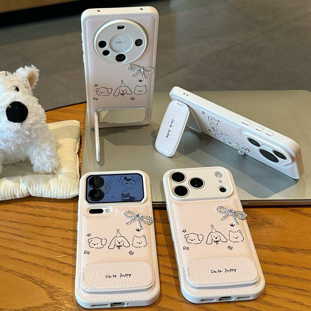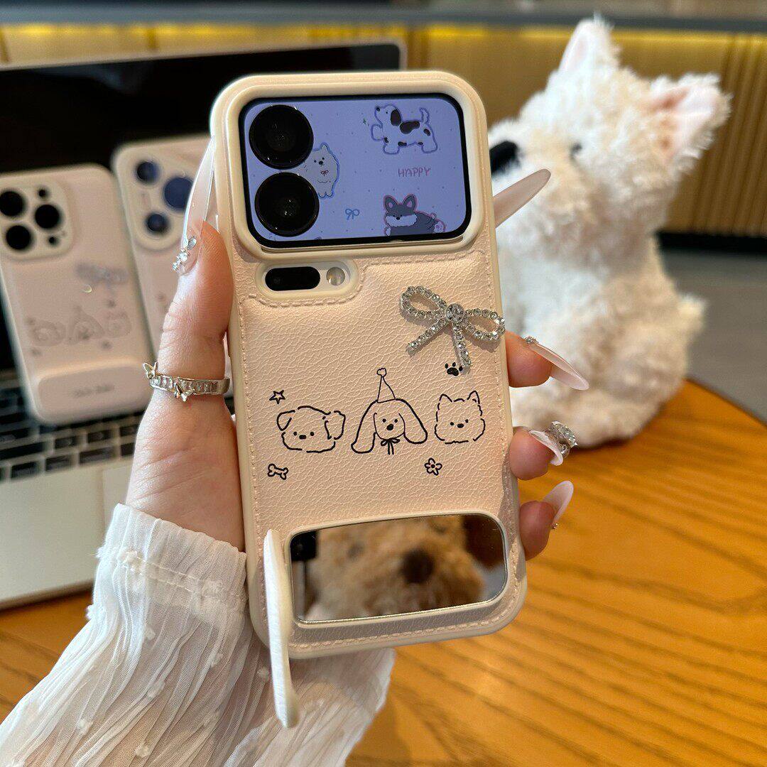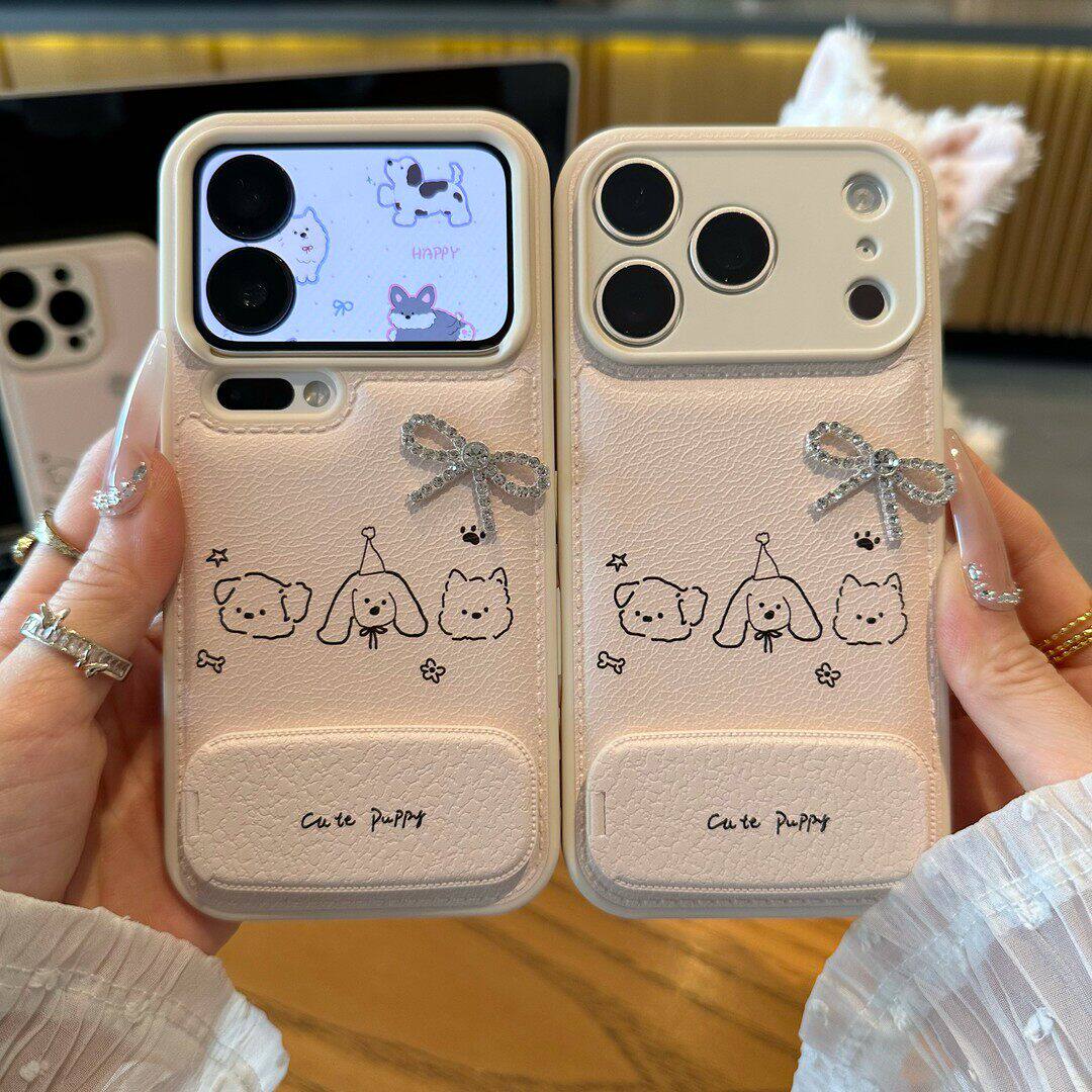 派对小狗适用苹果17ProMax手机壳iPhone16Pro蝴蝶结15Plus镜面支架14新款13糖果气垫12鼓包11简约air可爱卡通