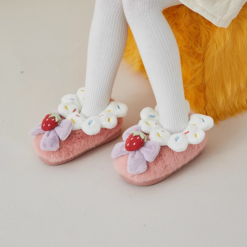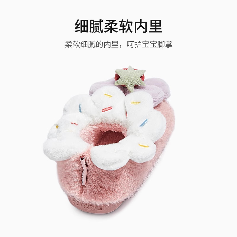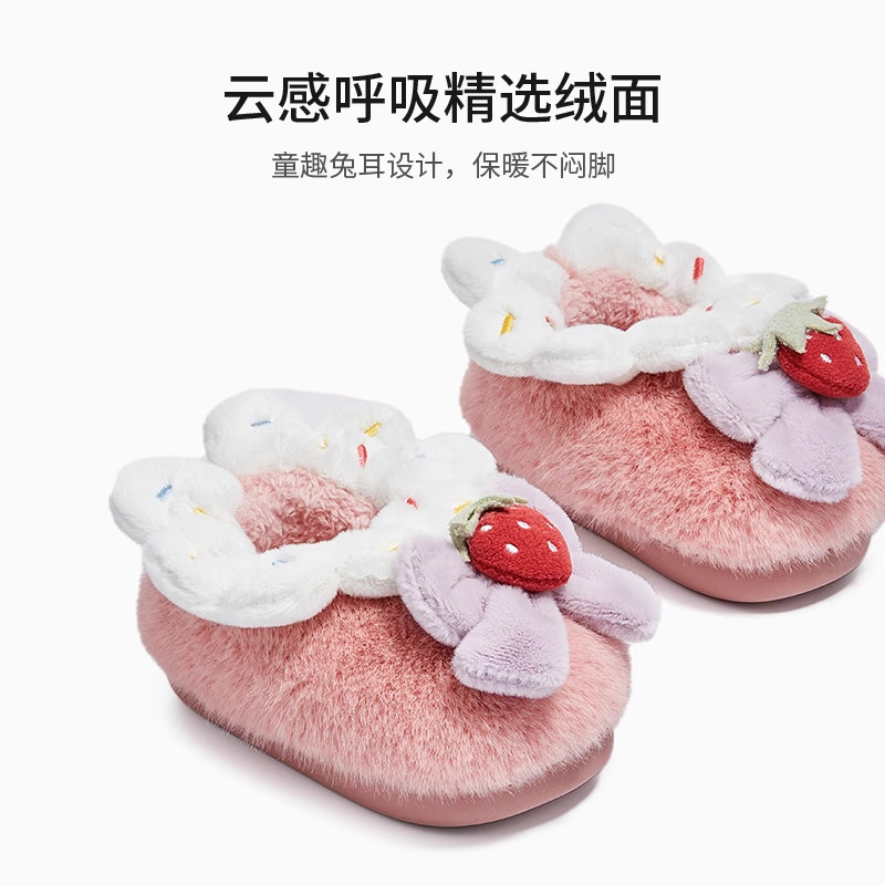 泰兰尼斯儿童冬季棉拖包跟室内鞋加绒保暖鞋草莓女童棉鞋家居拖鞋