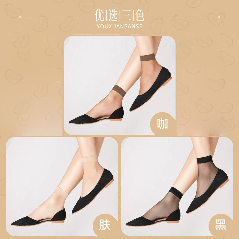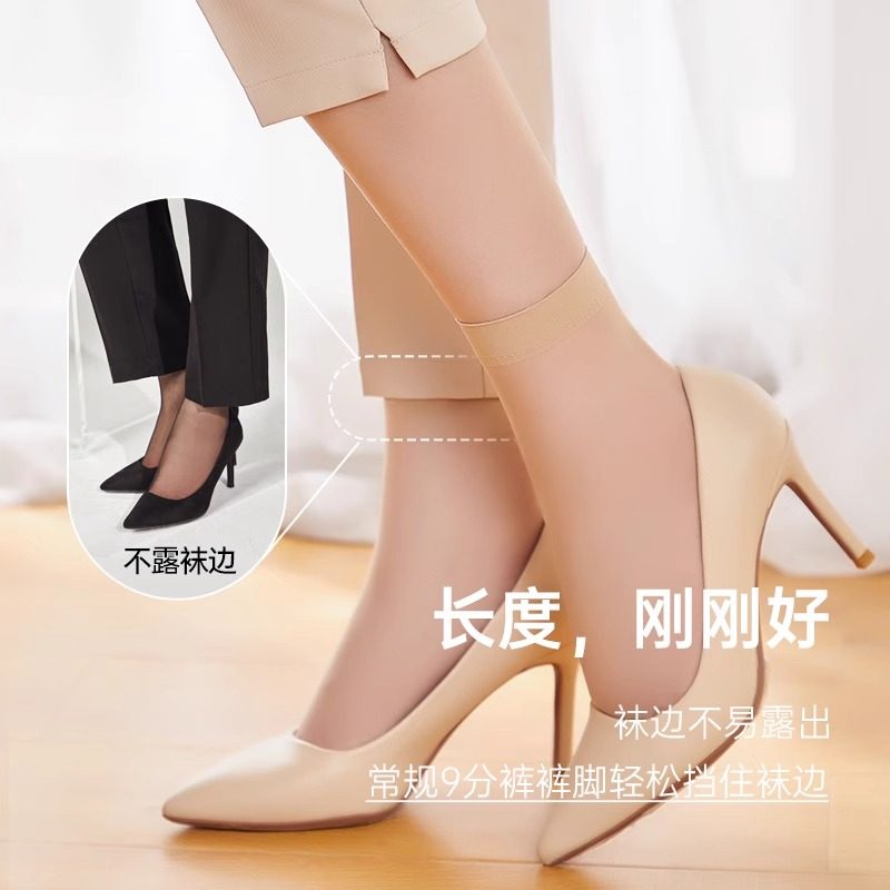 丝袜女薄款短秋季防勾丝黑肉色水晶丝袜子女夏天短袜防滑棉底隐形