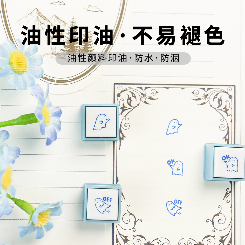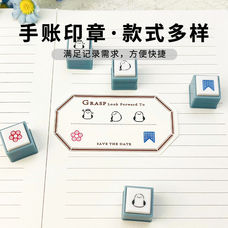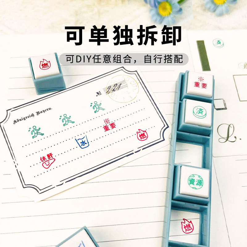 日本 KODOMO NO KAO 童颜迷你三联按钮式可拆浸透印章Pick手账印章素材工具DIY材料可爱图章表情天气日程记录