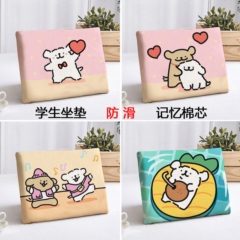 线条小狗卡通可爱慢回弹方形记忆棉坐垫芯海绵椅子垫子方垫椅垫
