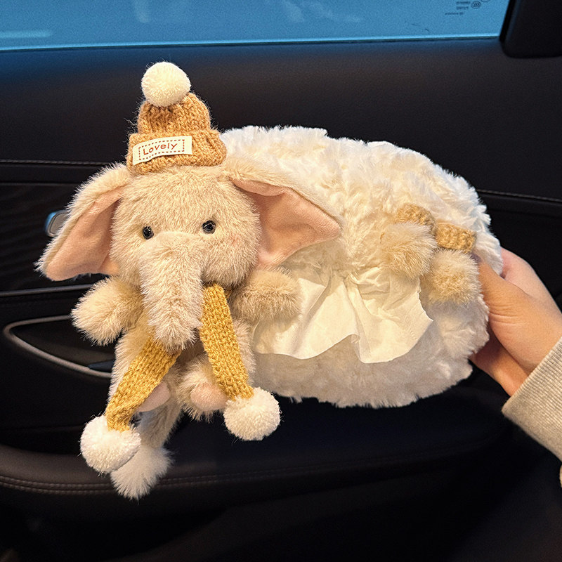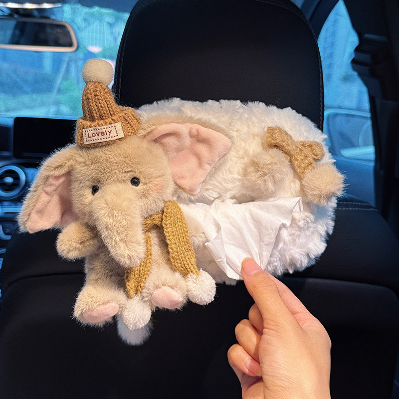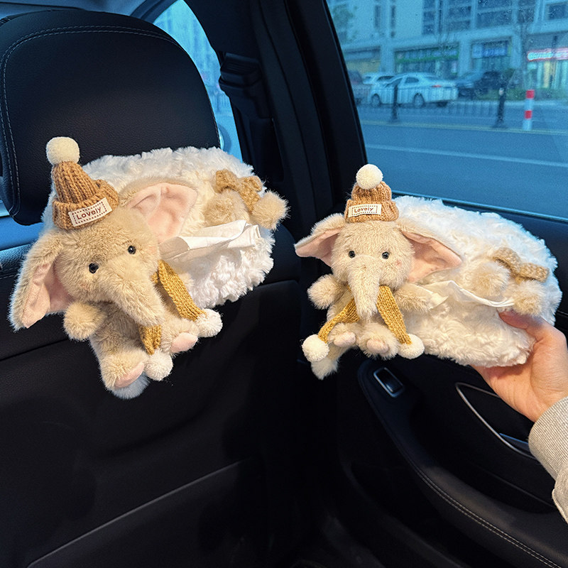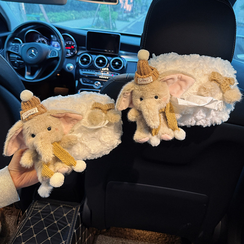 2025新款车载可爱小象卡通汽车纸巾盒高级感可爱抽纸盒车内装饰品