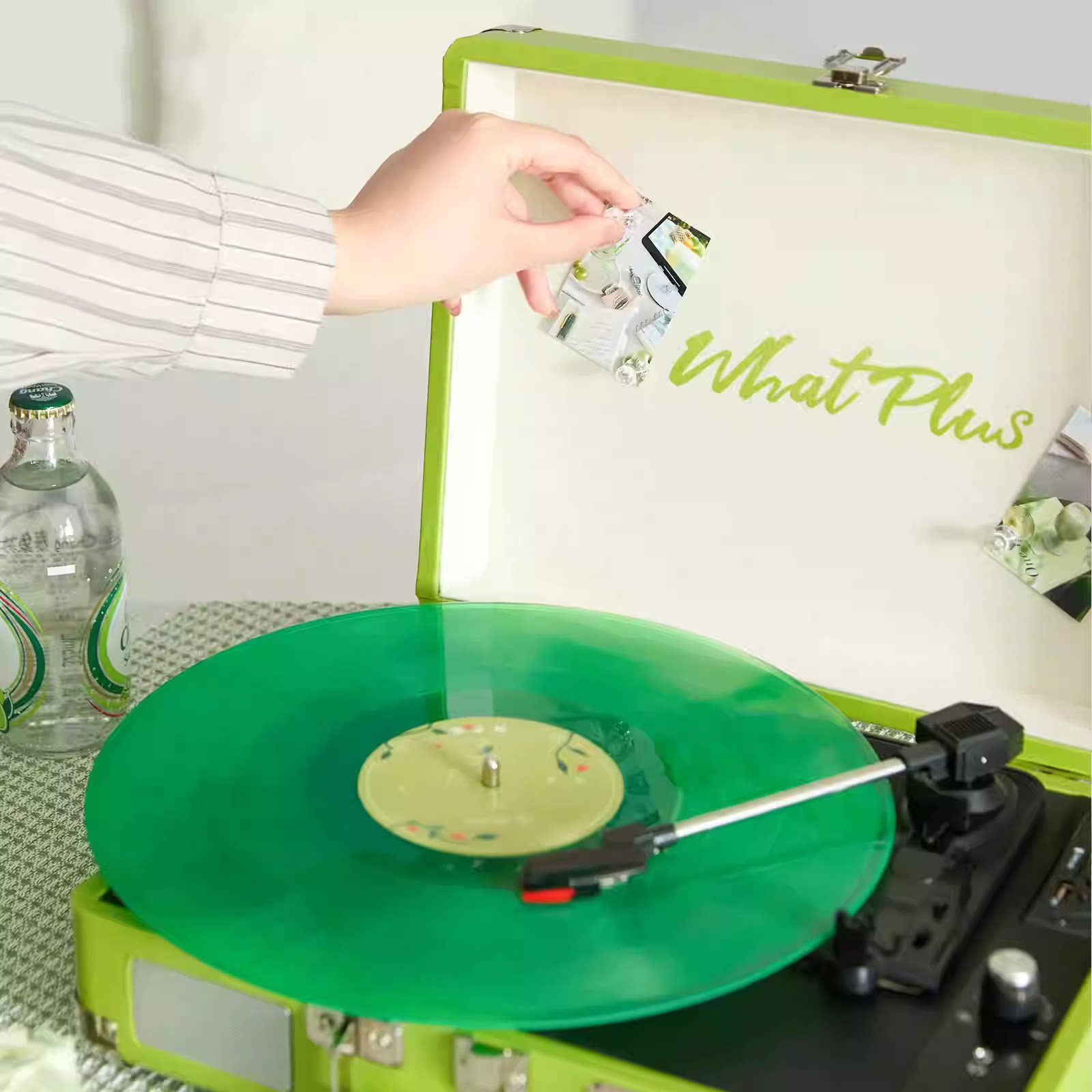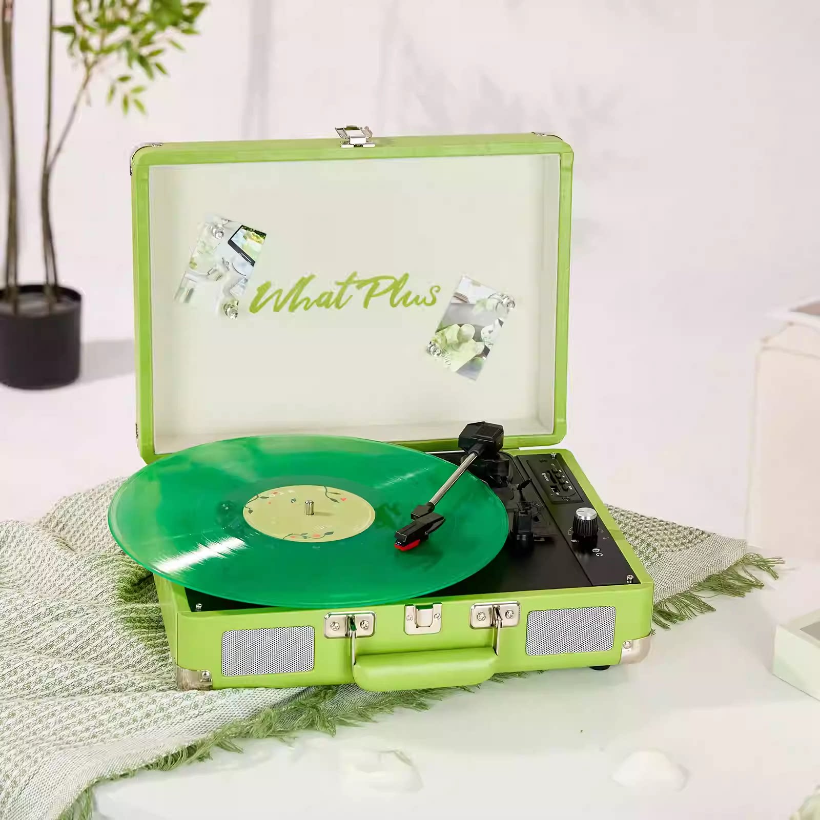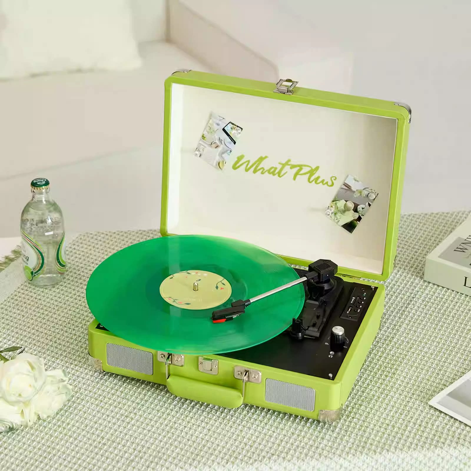 问加 牛油果绿P1黑胶唱片机留声机蓝牙音响便携皮箱款送礼物生日