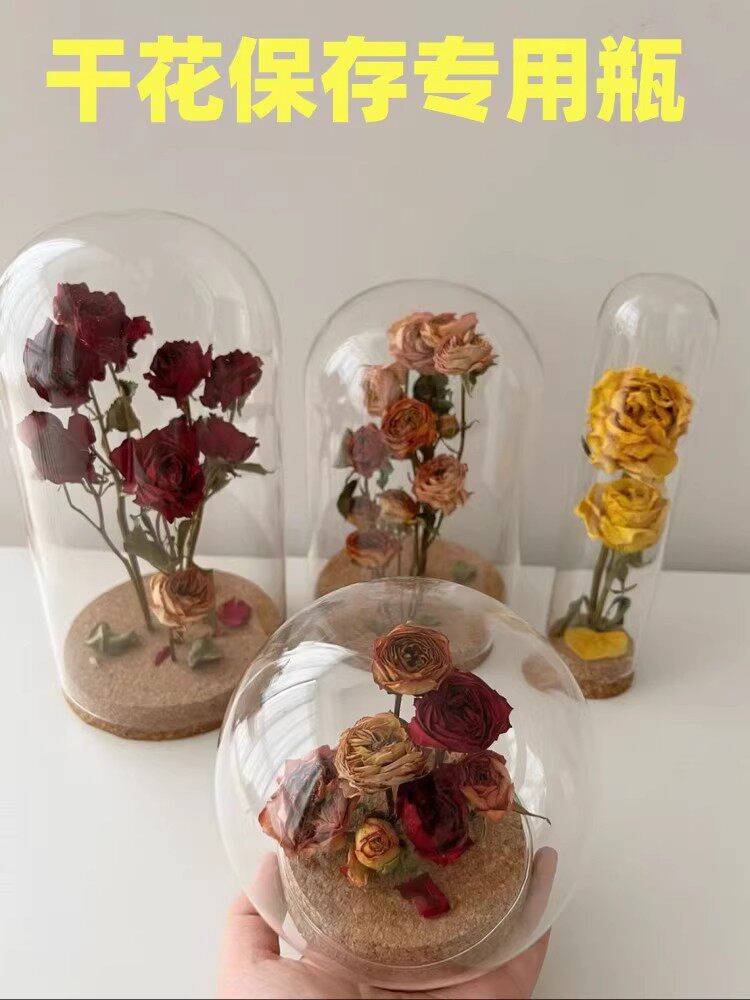 干花保存瓶玫瑰花软木塞透明收纳展示盒永生材料摆件玻璃罩ky桌面