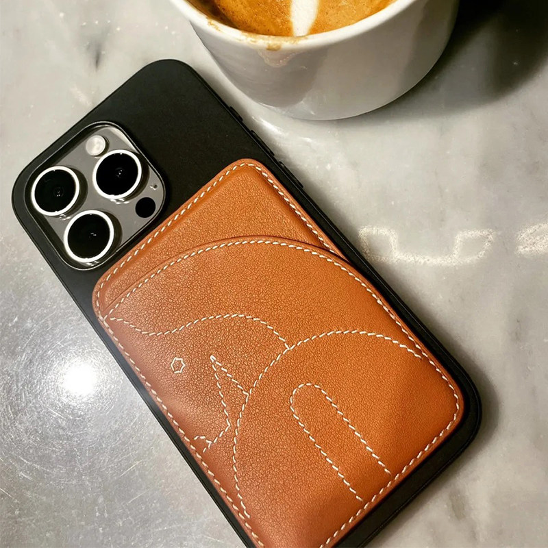 适用于iPhone17ProMax磁吸皮卡包17Air/Pro/16Pro商务卡包ChevalMagSafe真皮磁吸卡包牛皮NFC卡套门禁卡配件