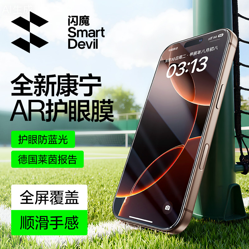 【AR护眼】闪魔适用苹果17promax钢化膜iPhone16pro手机膜15康宁ar增透抗反射pm全屏莱茵防蓝光ip防摔防爆