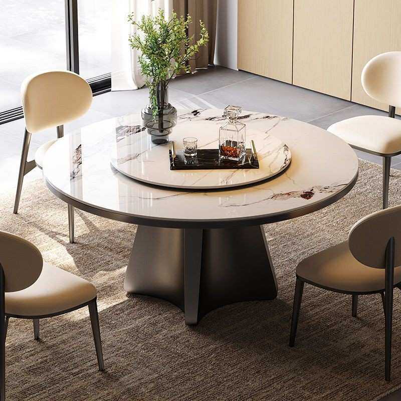 简约现代微晶石家用餐桌椅大理石圆形圆桌小户型超晶石带转盘饭桌
