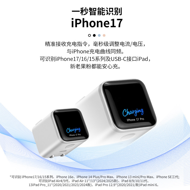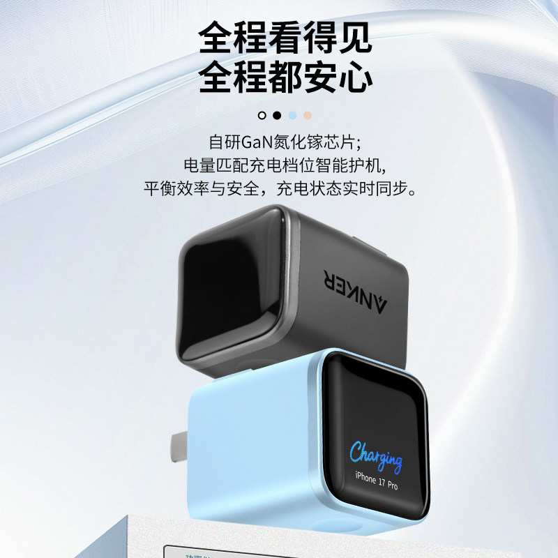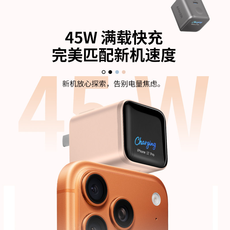 Anker安克安心充屏显Smart45W适用苹果新机充电器iPhone17ProMax充电头16Pro快充15手机14