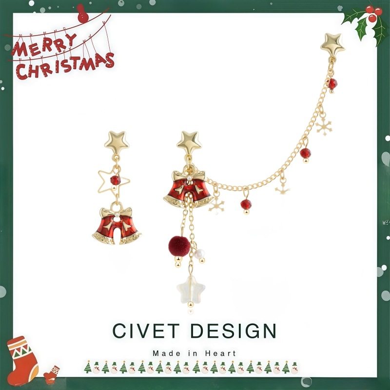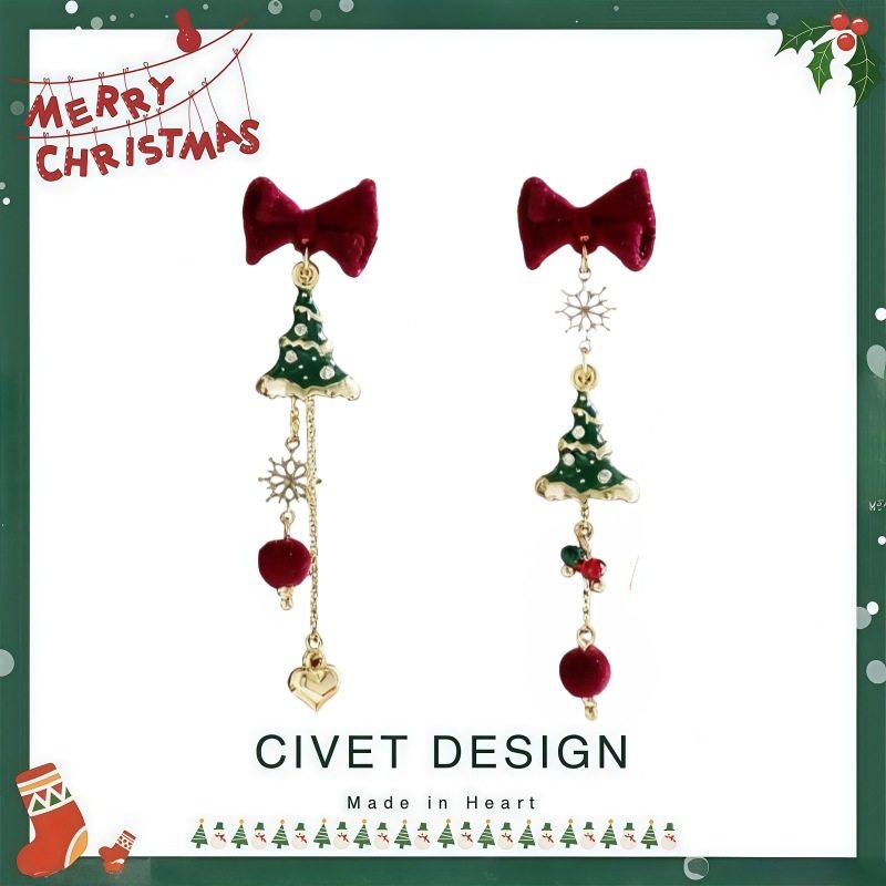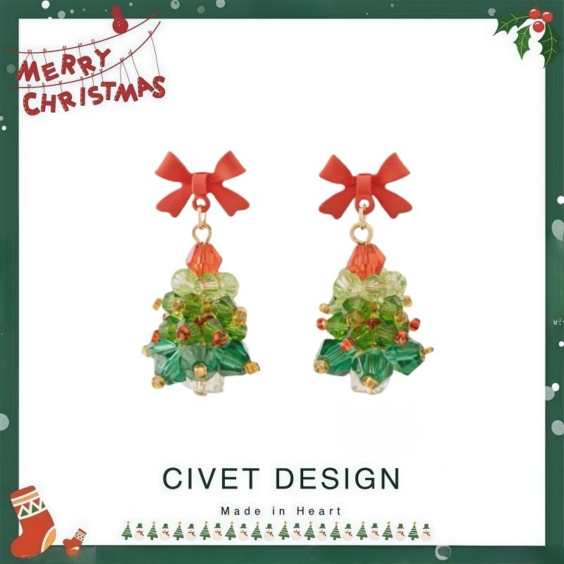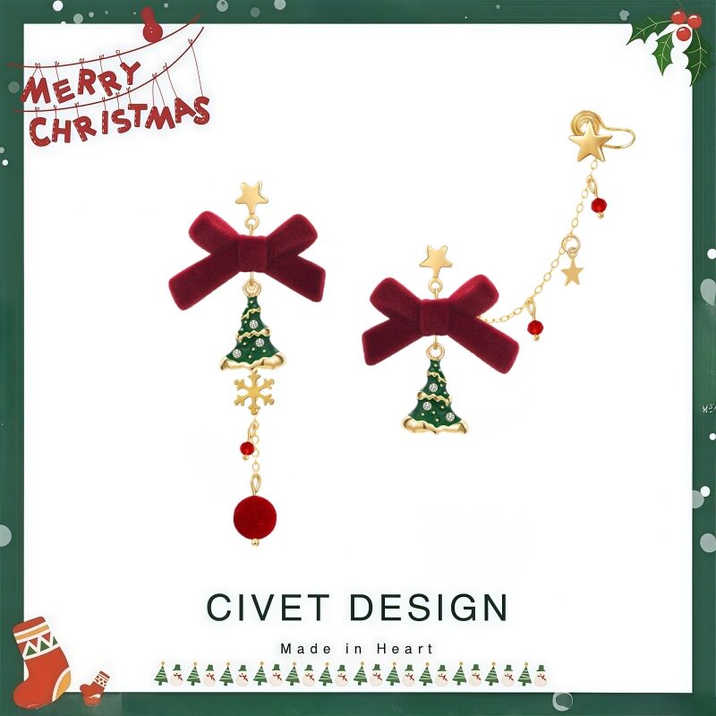 原创圣诞节耳饰品圣诞树不对称耳环可爱少女耳钉无耳洞耳夹礼物