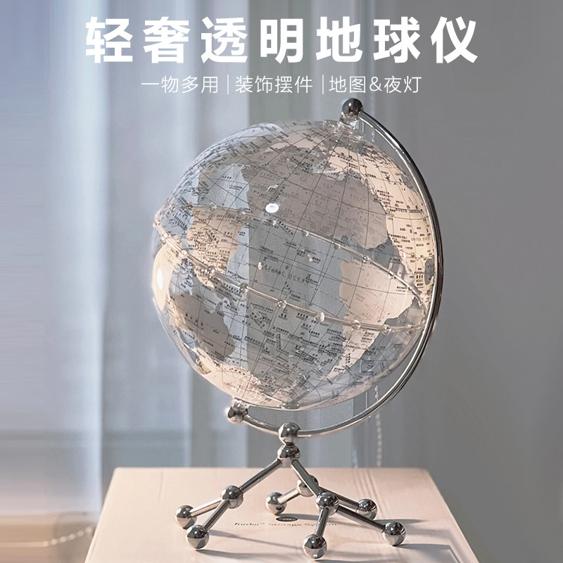 透明地球仪摆件可发光小夜灯悬浮轻奢高级感客厅玄关酒柜卧室装饰台灯儿童小学生初中生桌面男孩女孩生日礼物