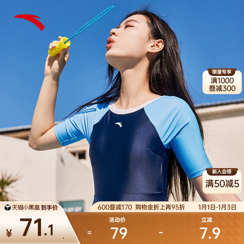 安踏小蛮腰丨女子裙式连体泳装塑形修身海边防晒长泳衣新官方正品