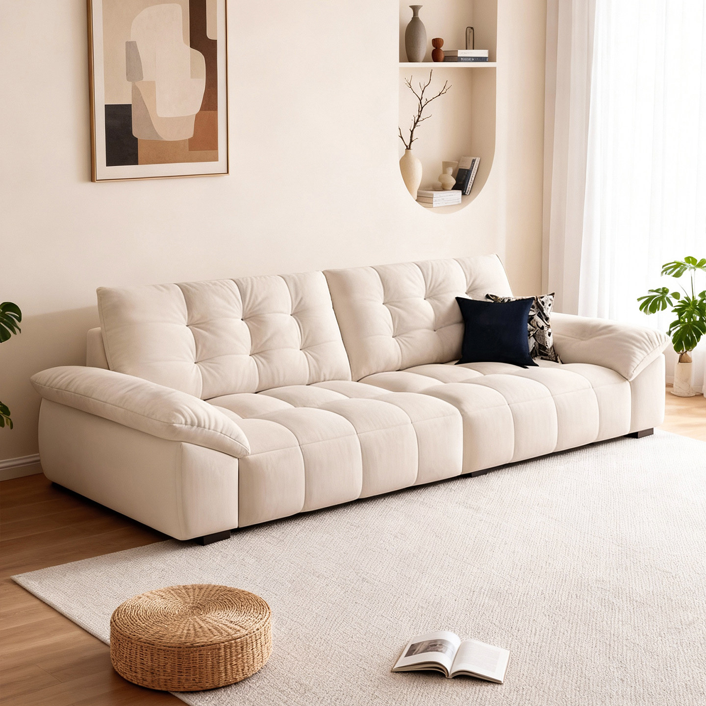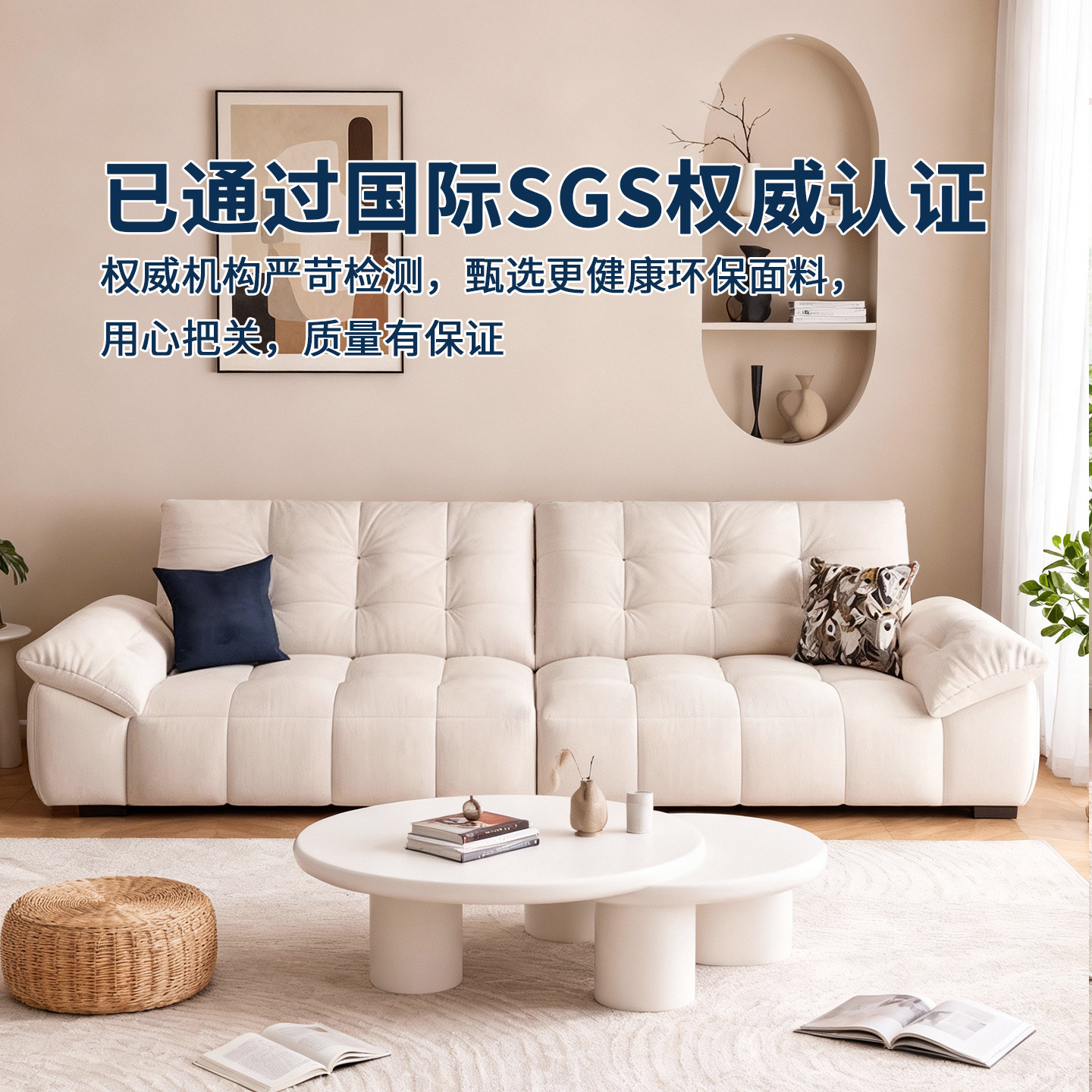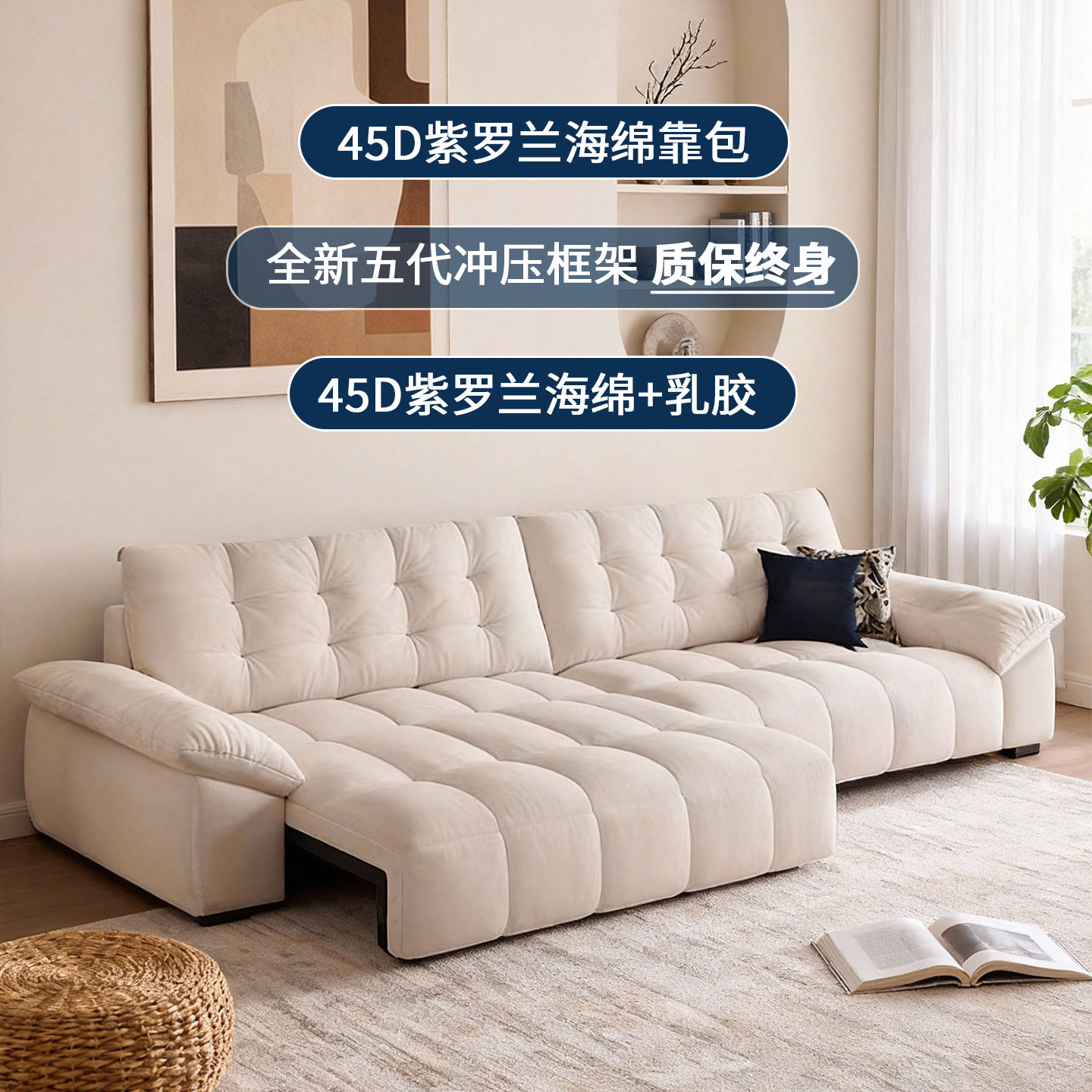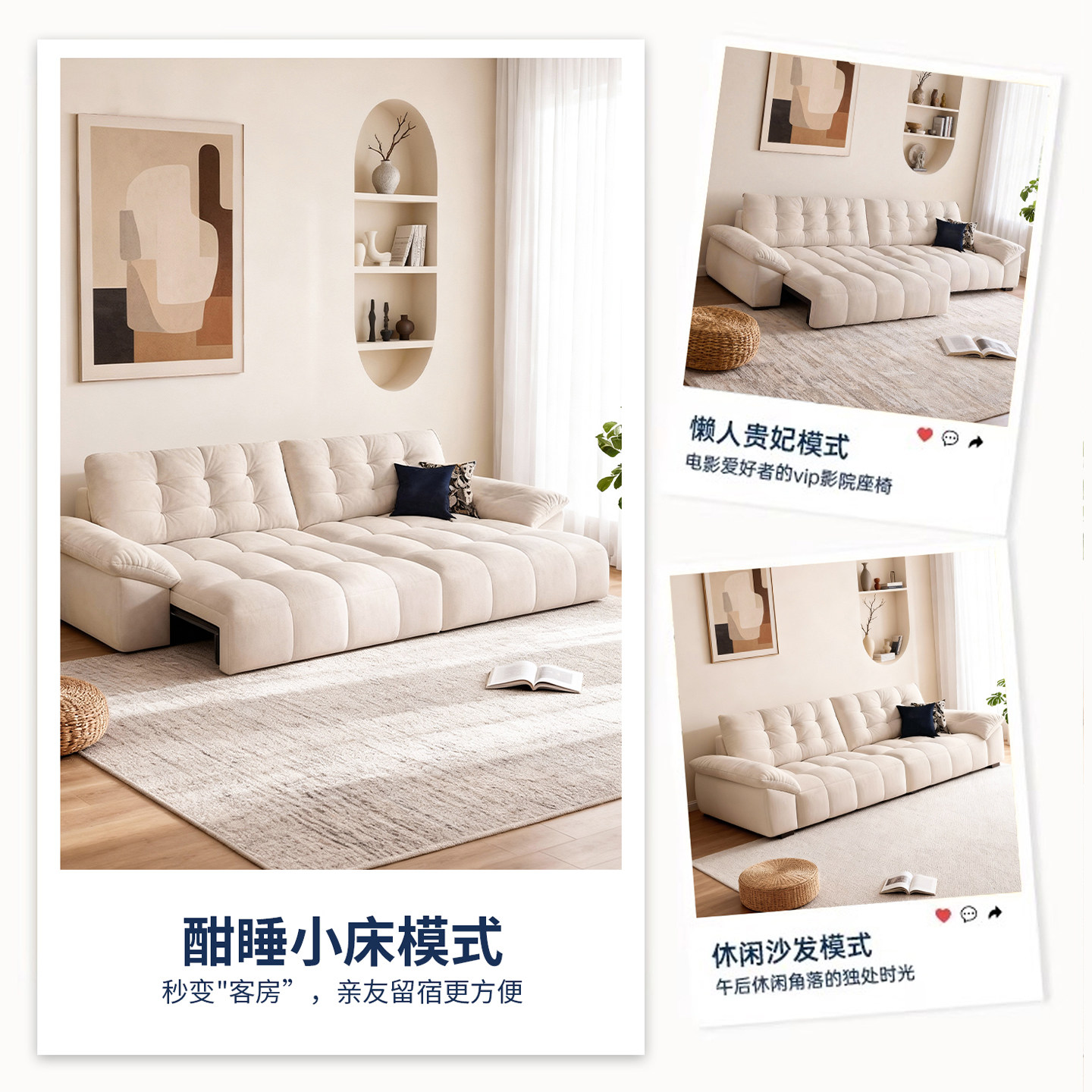 司朴奶油风可伸缩电动功能沙发床现代简约客厅直排云朵布艺沙发