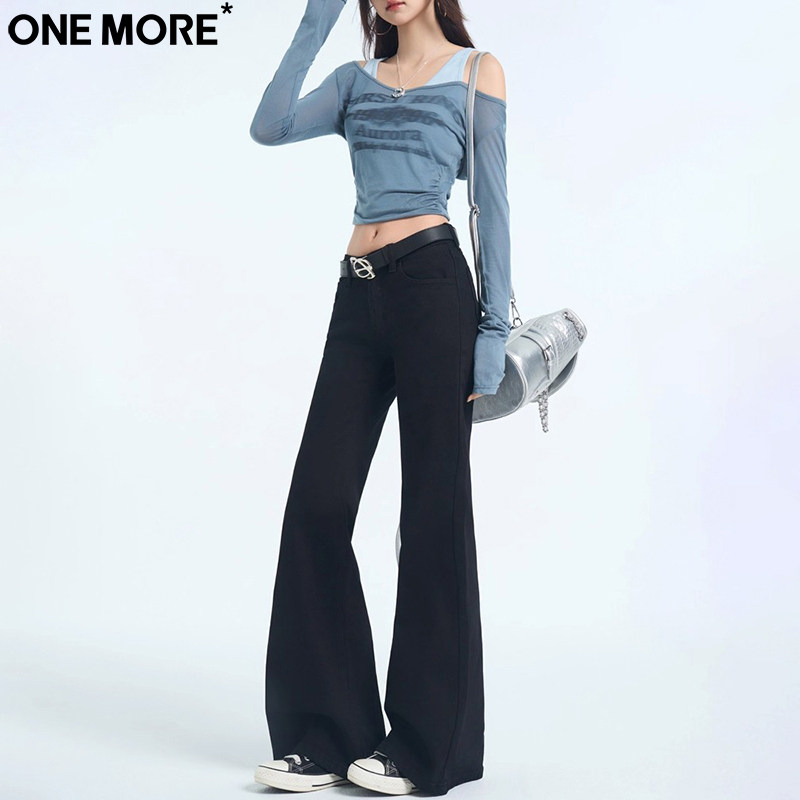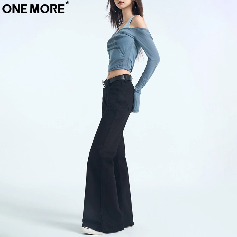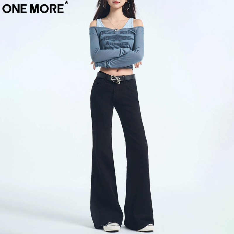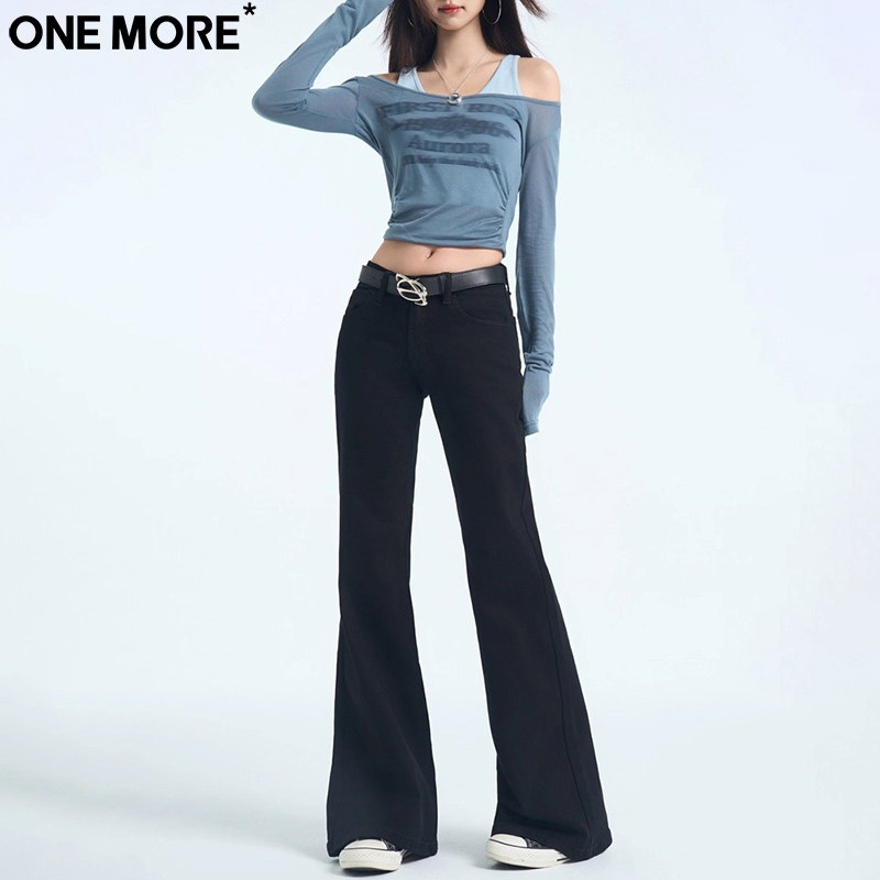 One More辣妹低腰黑色微喇牛仔裤女秋季新款修身提臀显瘦喇叭裤子
