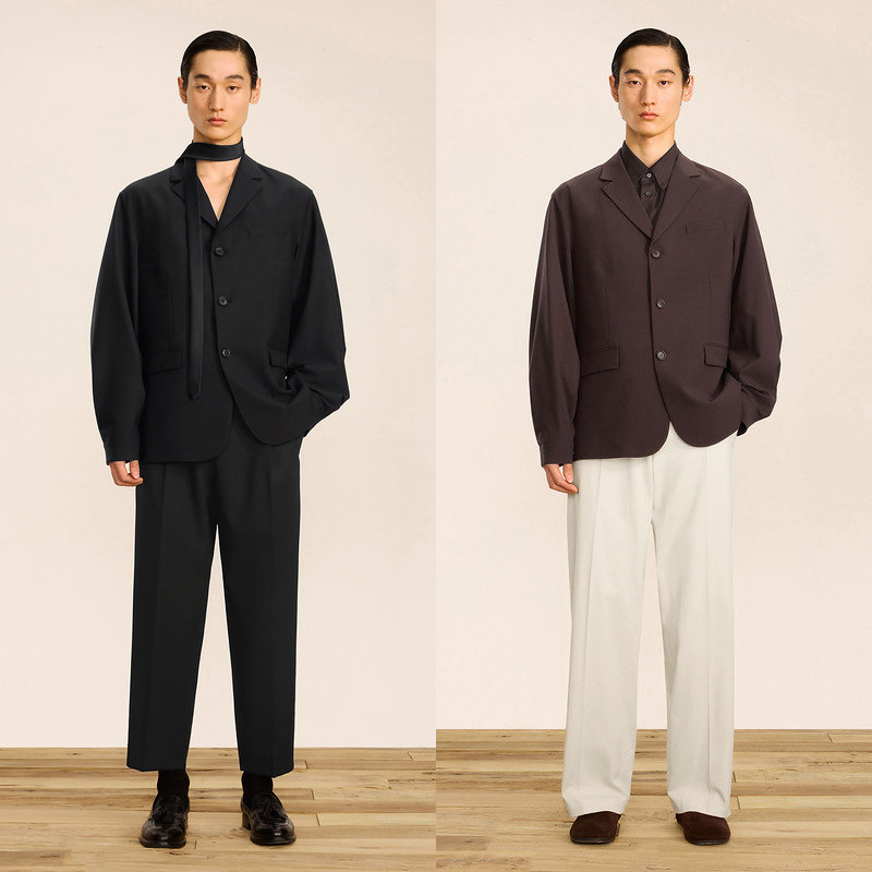 速写奥莱outlets男装秋冬新品宽松西服外套简约设计优雅感通勤