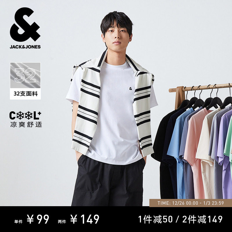 【凉感】杰克琼斯男装2025年秋季新款打底衫刺绣男士短袖T恤情侣