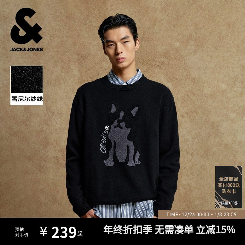 杰克琼斯男装25年秋季新款动物卡通毛衣宽松雪尼尔针织衫情侣上衣