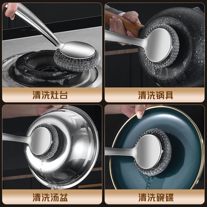 带柄钢丝球刷子长杆洗锅不生锈清洁厨房不伤手洗碗瓶罐不掉渣灶台