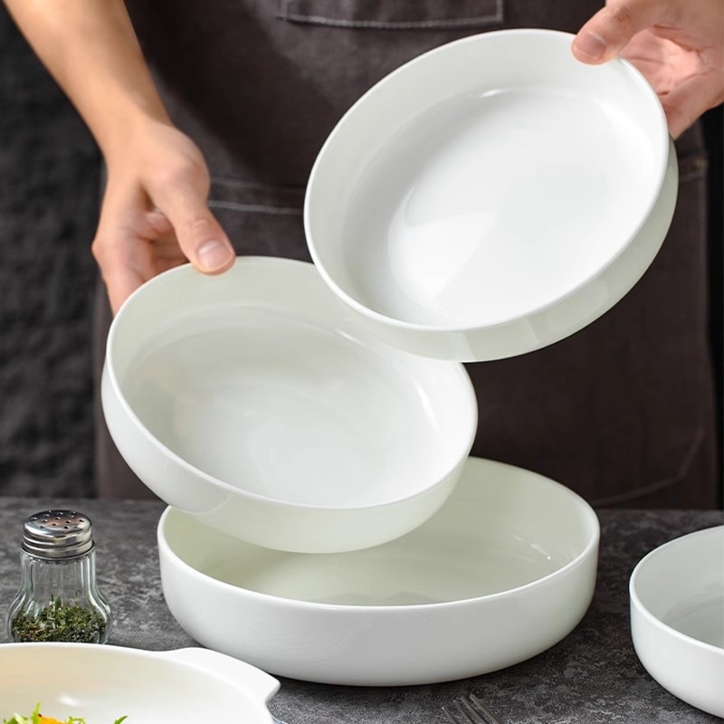 景德镇餐具深钵盘纯白无铅骨瓷饭碗新中式圆形RS炒菜深盘酒店家用
