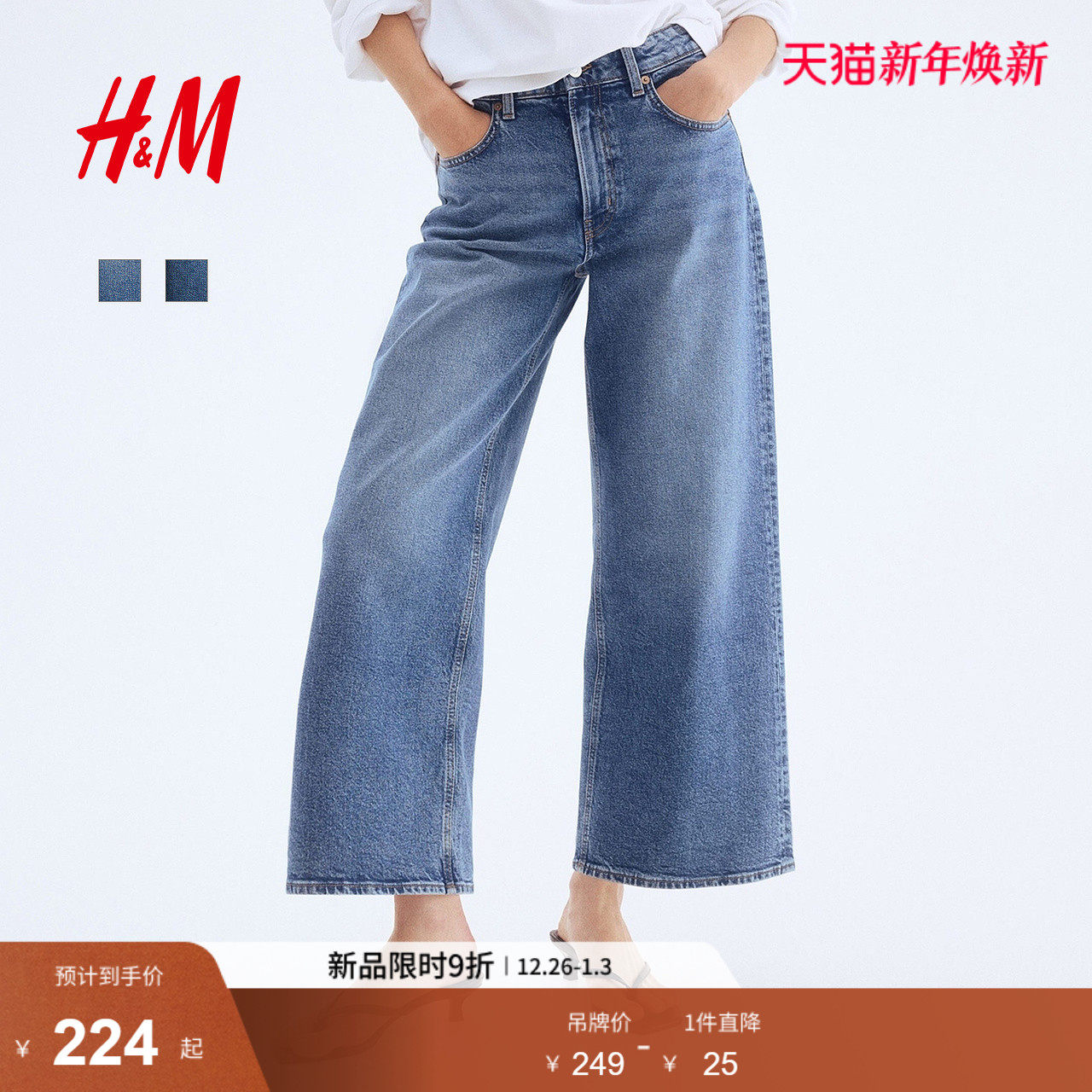 HM女装牛仔裤冬季时尚休闲时尚高腰阔腿微弹棉质修身长裤1236909