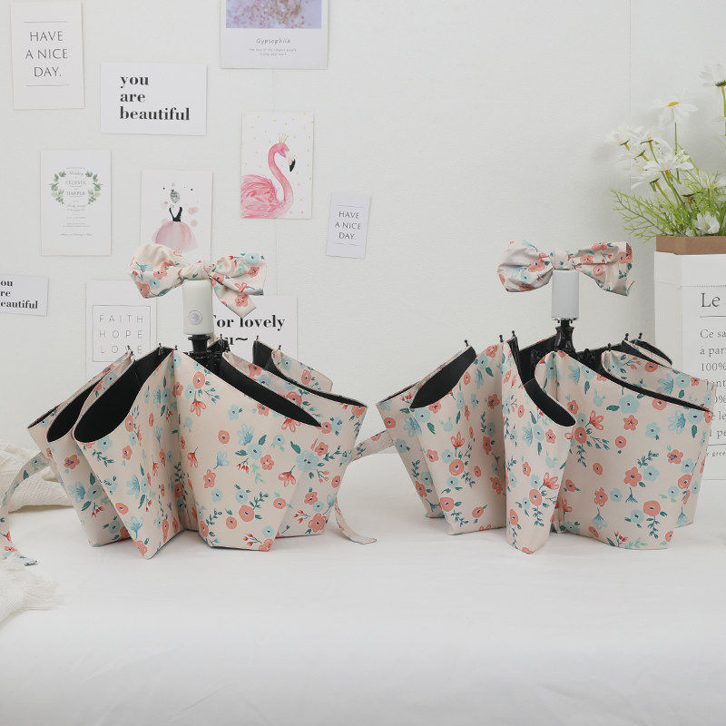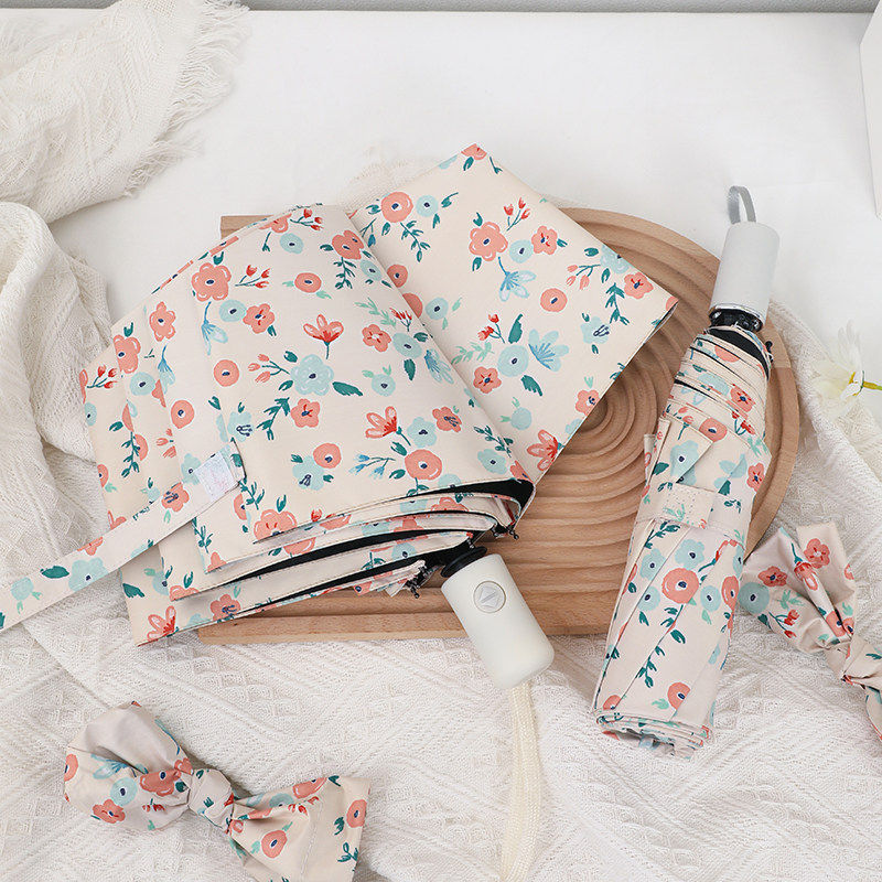 法式ins碎花全自动晴雨两用摺叠防晒抗UV遮阳女生高颜值雨伞小巧