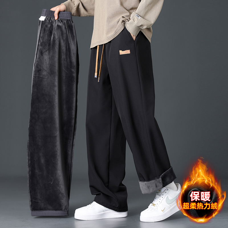 加绒直筒裤子男士秋冬款加厚保暖棉裤秋冬季宽松卫裤运动休闲长裤
