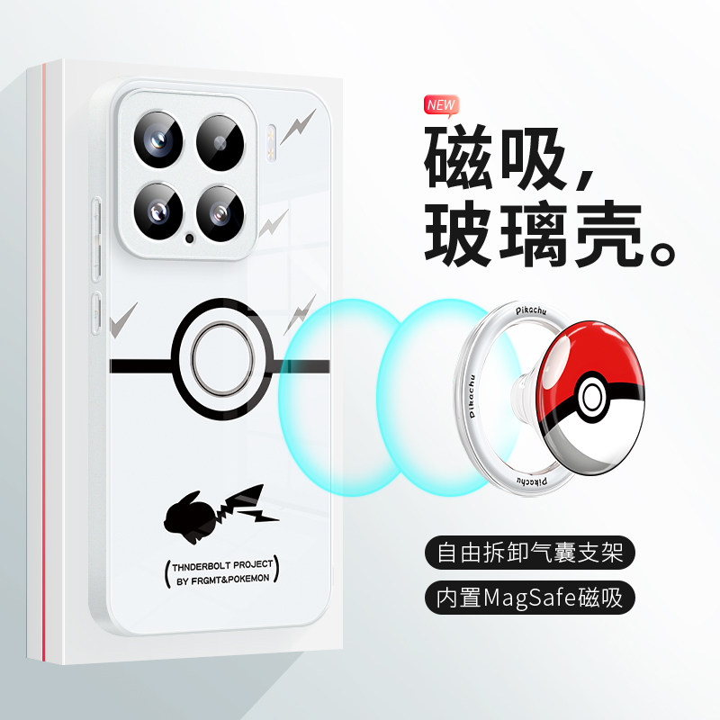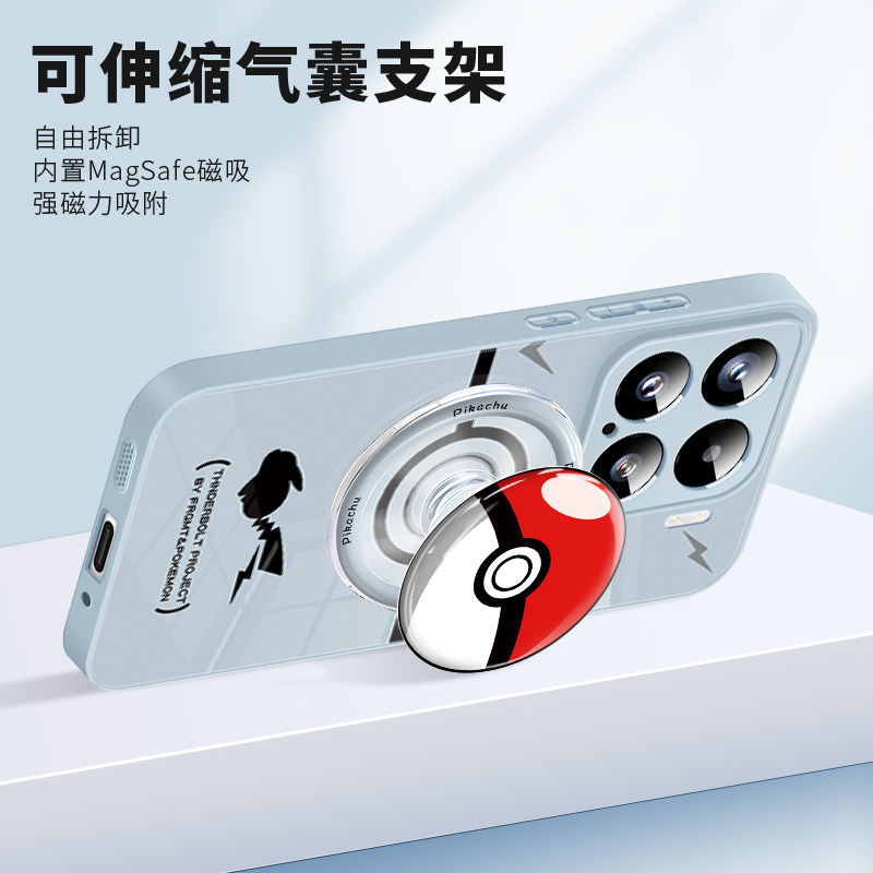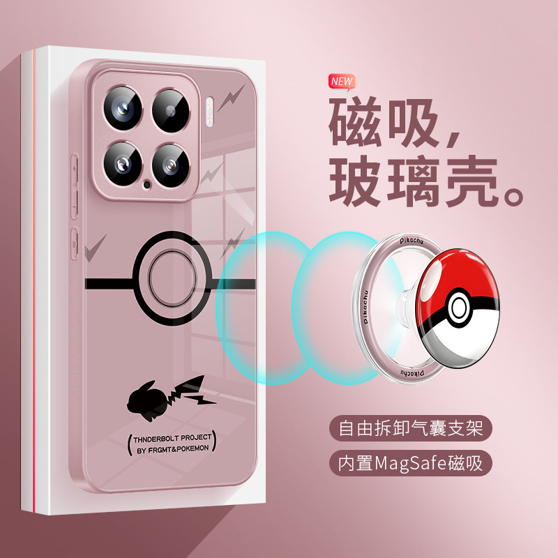 适用小米15pro手机壳磁吸宝可梦15个性创意女生14卡通皮卡丘14pro高档冷淡风14ultra背贴气囊支架可伸缩防摔