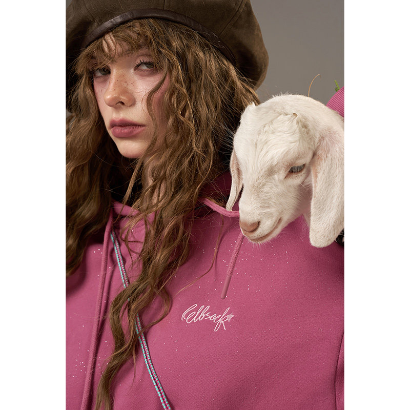 妖精的口袋美式刺绣撒银连帽卫衣女2025年新款秋季小个子短款上衣