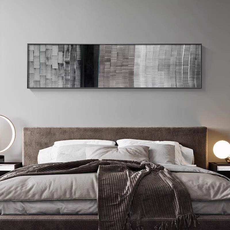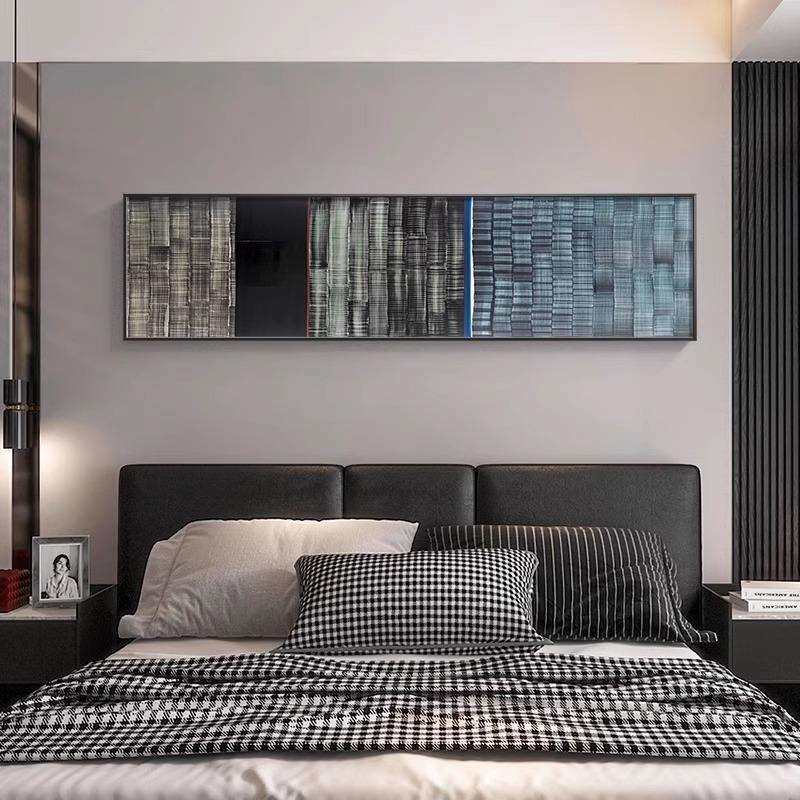 后现代简约抽象卧室横版装饰画黑白蓝色赤贫风房间床头主卧室挂画