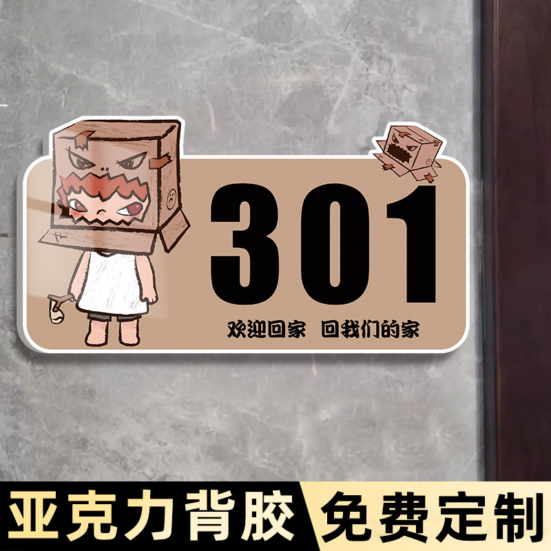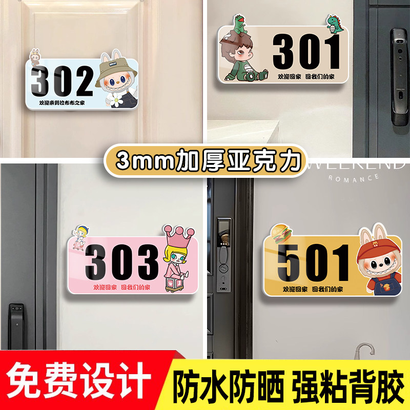 2025新款门牌号家用高级感创意入户门口亚克力墙贴门牌号码牌公仔宿舍门牌装饰可爱卡通数字号码门牌定制定做