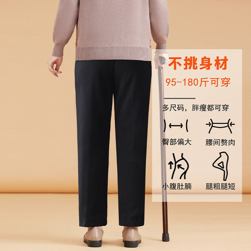 妈妈裤子春秋款松紧高腰弹力中老年女裤宽松大码直筒奶奶加绒长裤