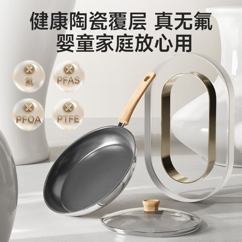 钛红芯控温平底锅不粘锅家用无涂层炒菜煎蛋牛排电磁炉专用深煎锅