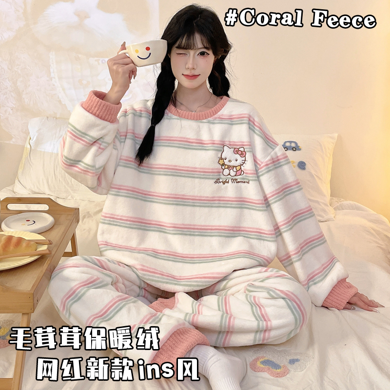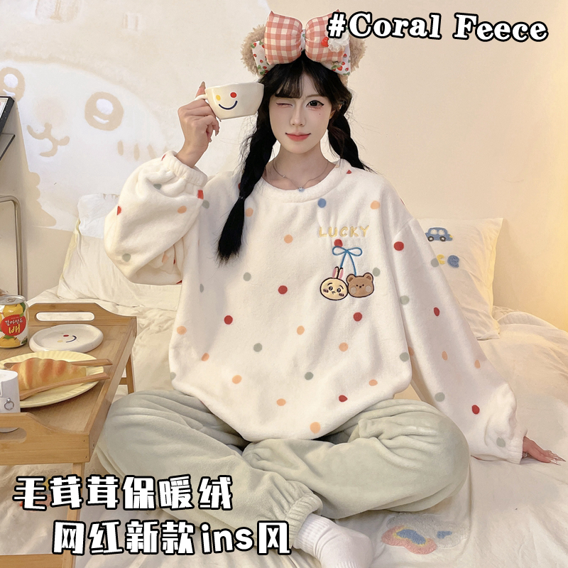 网红珊瑚绒睡衣女生2025新款薄绒秋冬款套装家居服卡通保暖可外穿