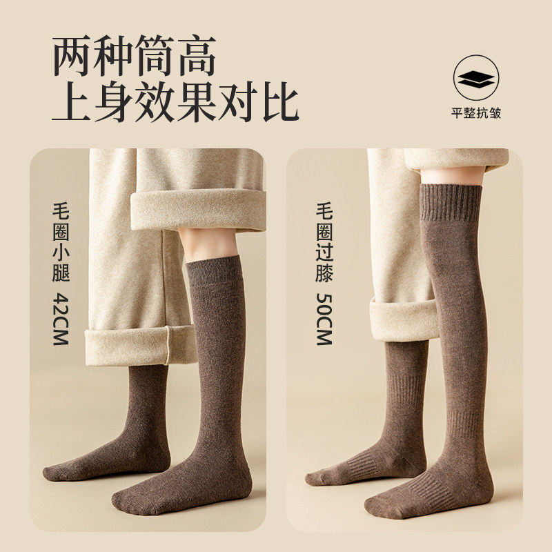 过膝袜子女秋冬羊毛长筒袜加厚保暖护膝大腿袜纯棉压力显瘦高筒袜