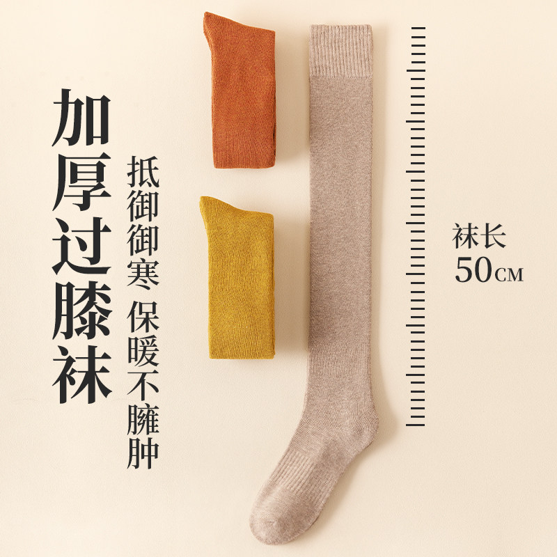 过膝袜子女高筒袜秋冬季加绒加厚保暖大腿纯色冬天半截长筒袜膝盖