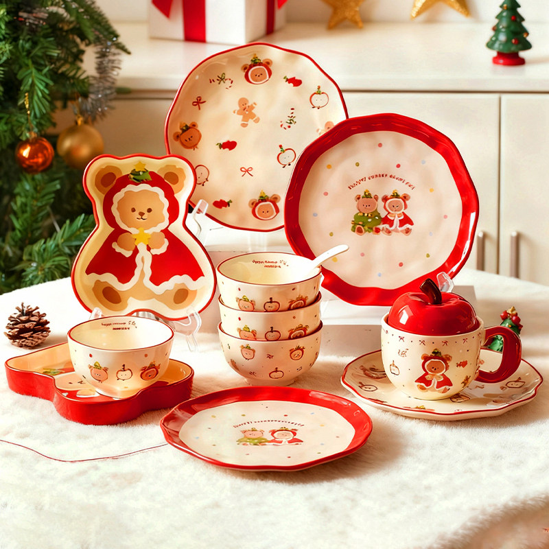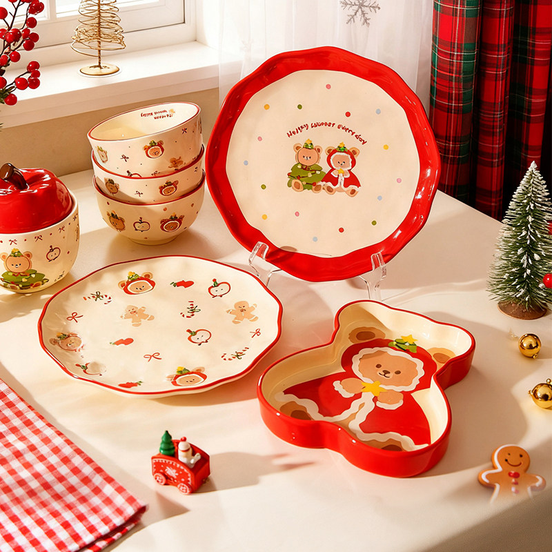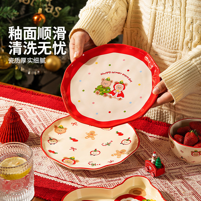 摩登主妇新年红色餐具饭碗家用盘子高颜值碗具餐盘本命年生日礼物