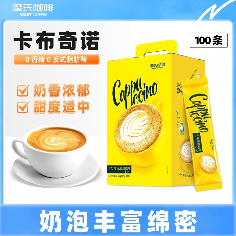摩氏偏甜速溶咖啡三合一拿铁奶香提神特浓条装咖啡粉100条原味