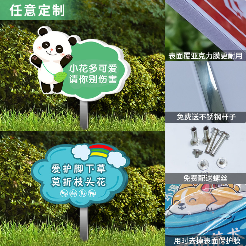 花草牌标识牌爱护花草提示牌草坪警示牌定做广告牌绿化温馨小草禁止请勿踩踏插地牌菜地标识牌