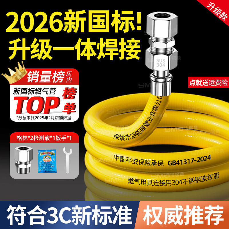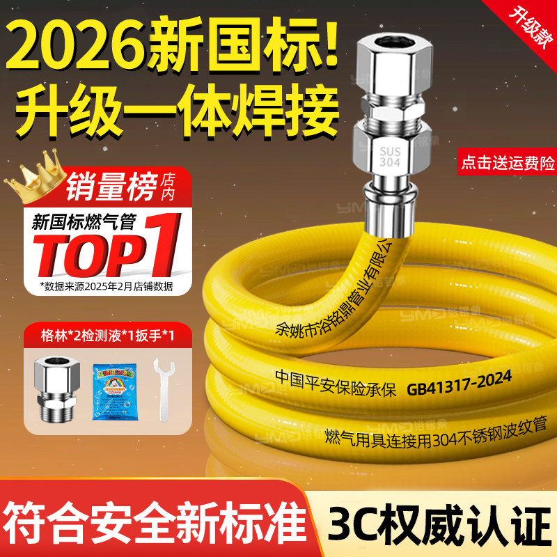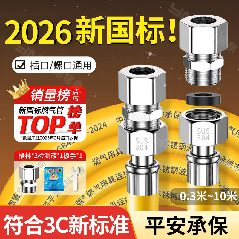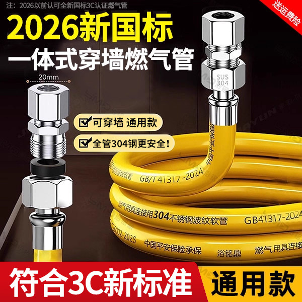 2026新国标不锈钢波纹燃气管天然煤气热水器管道软管专用连接管子