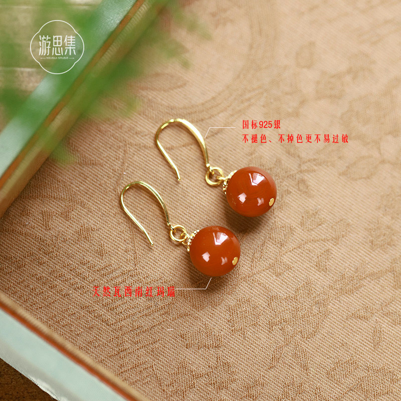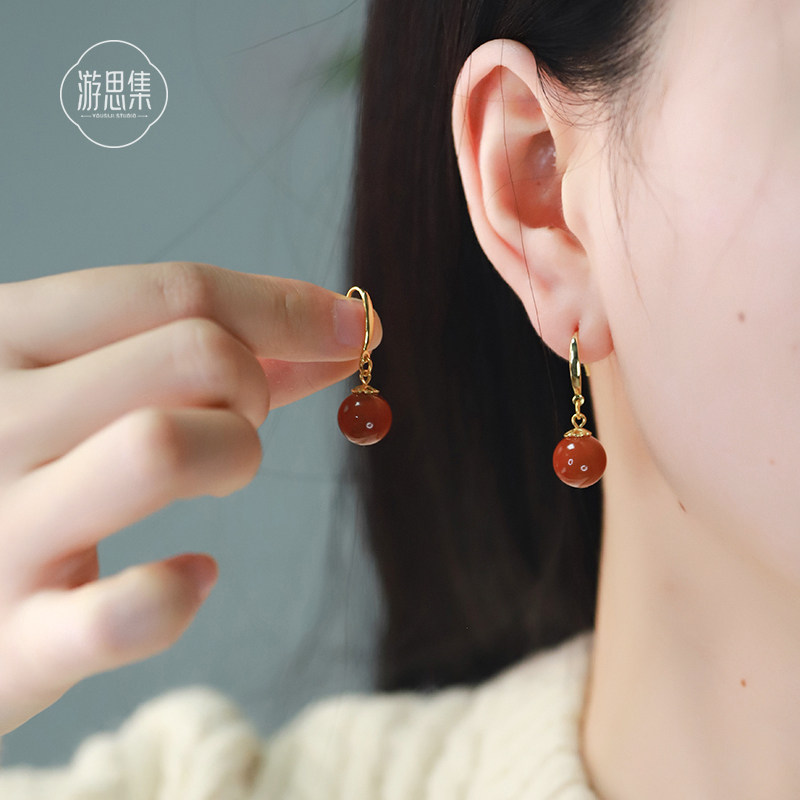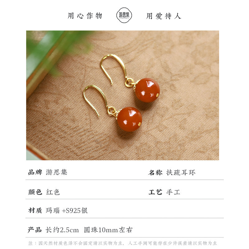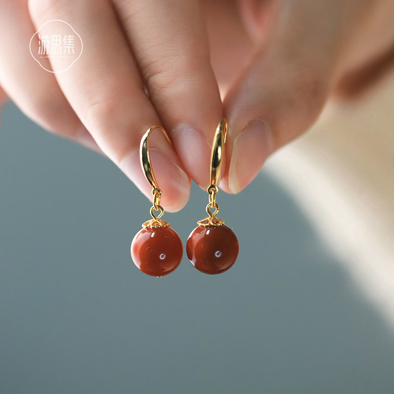 天然火焰纹南红玛瑙耳环古风新年红色耳饰短流苏耳坠新中式耳线女
