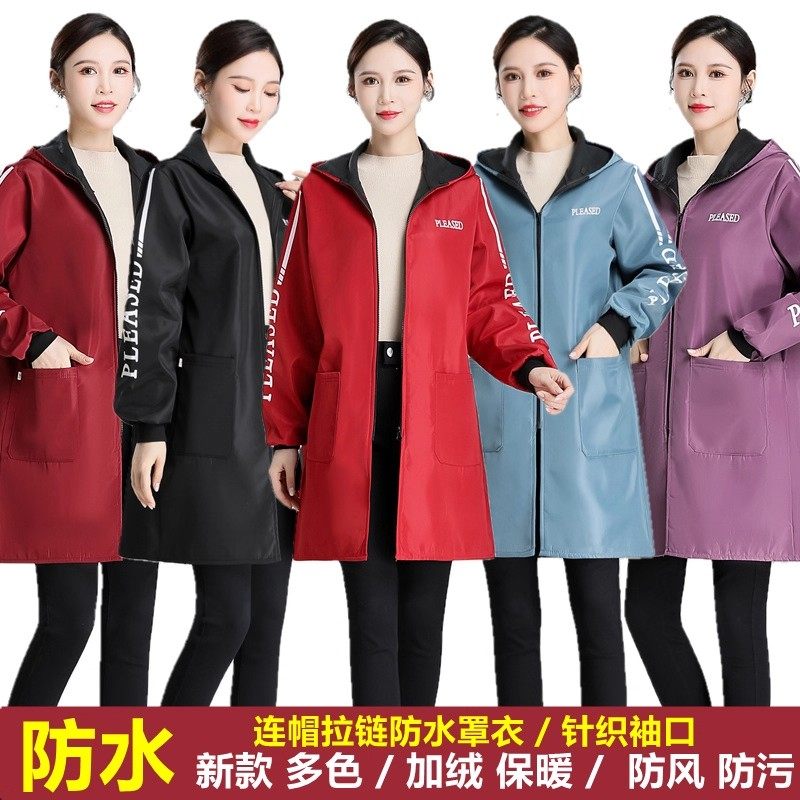 防水防油罩衣女冬季加绒加厚新款长袖围裙厨房家用防脏工作服外套